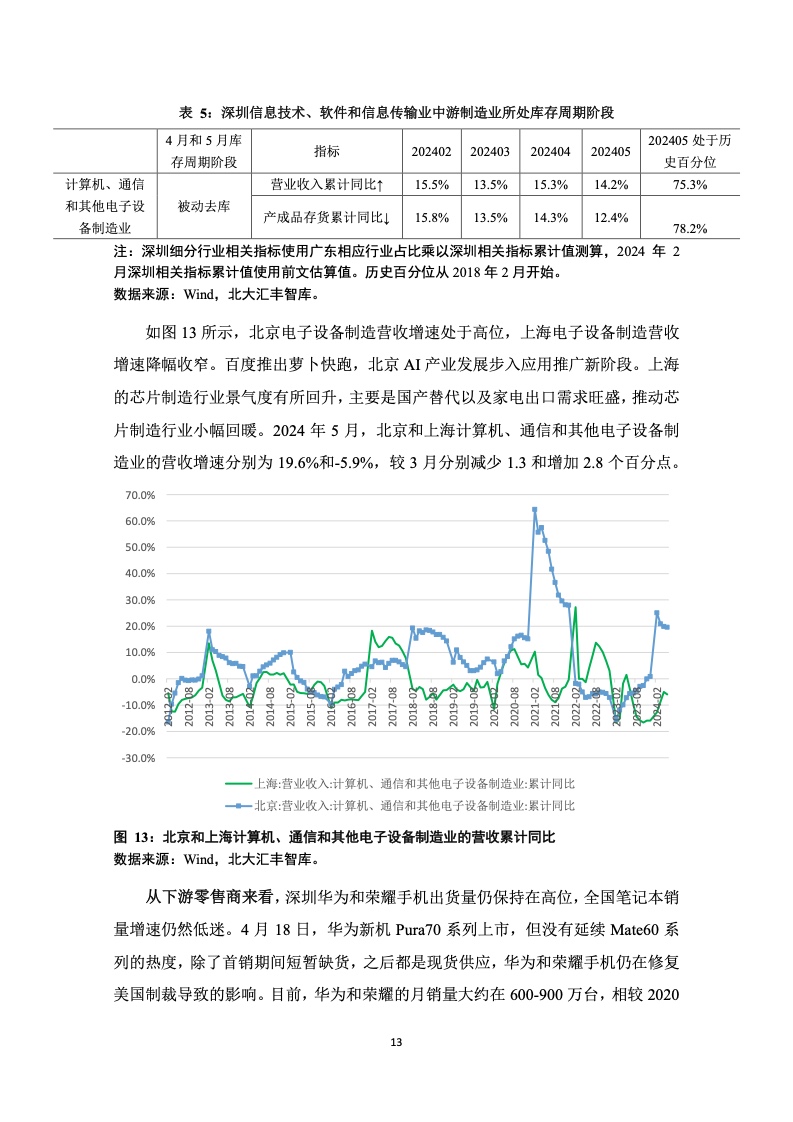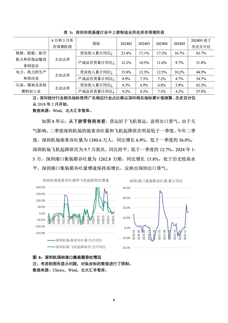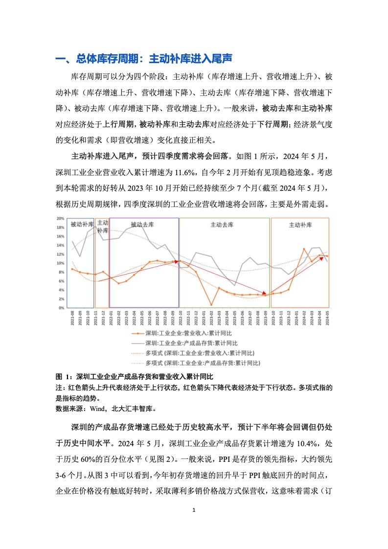从总体库存周期的角度看,今年 4 月和 5 月,深圳工业进入主动补库尾声,营收增速正在筑顶,深圳工业仍然处于较为景气的状态。