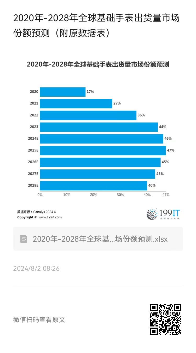 - 2023年Q2-2024年Q3全球基础手表出货量市场份额(附原数据表)