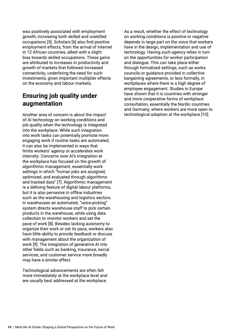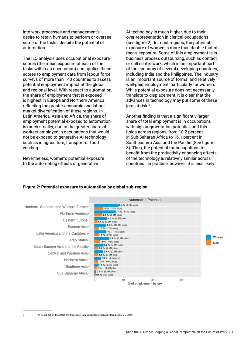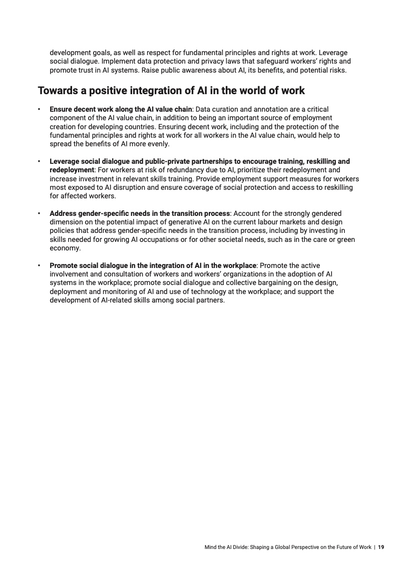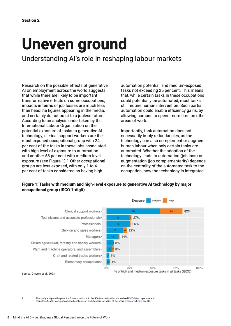 由联合国和国际劳工组织共同发布的报告《关注AI鸿沟:塑造未来劳动世界的全球视角》探讨了AI应用不均衡这一关键问题,及其对全球社会正义的影响。