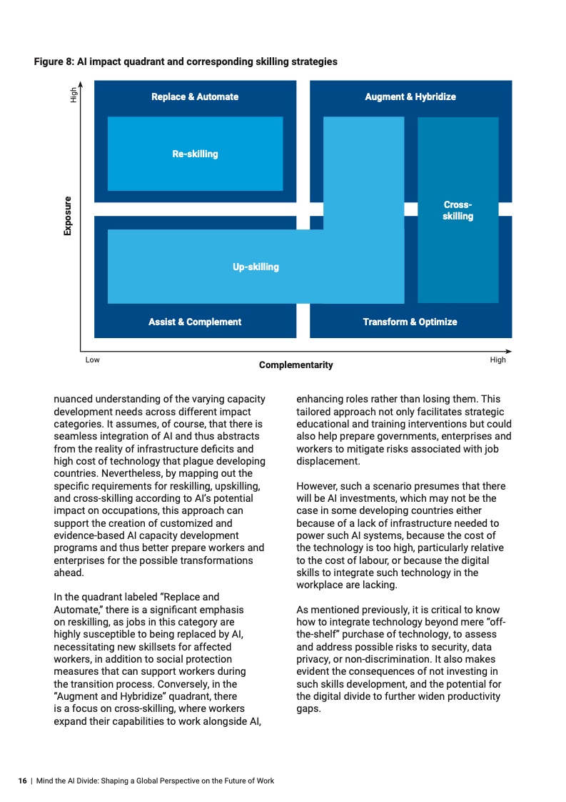AI开始驱动全球经济生产和创新的同时,在获取数字基础设施、先进技术、优质教育和培训方面存在的差距正加深现有的不平等,欠发达国家可能在此领域落后,加剧经济和社会鸿沟。
