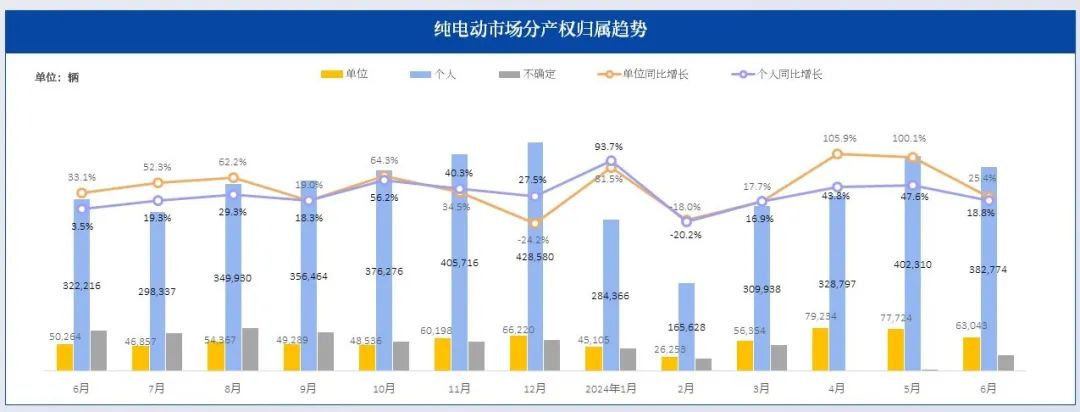 - 6月,新能源市场的销量占总体乘用车销量的47.0%,相比去年同期上涨13.8%。