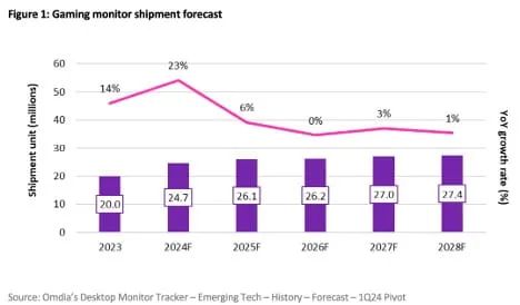 据《Omdia台式显示器情报服务》(Omdia’s Desktop Monitor Intelligence Service)的最新洞察,刷新率超过120Hz的游戏显示器市场预计将在2024年同比增长9%,达到2470万台。与此同时,配备操作系统和流媒体服务门户的智能显示器市场预计将同比增长63%,达到120万台。