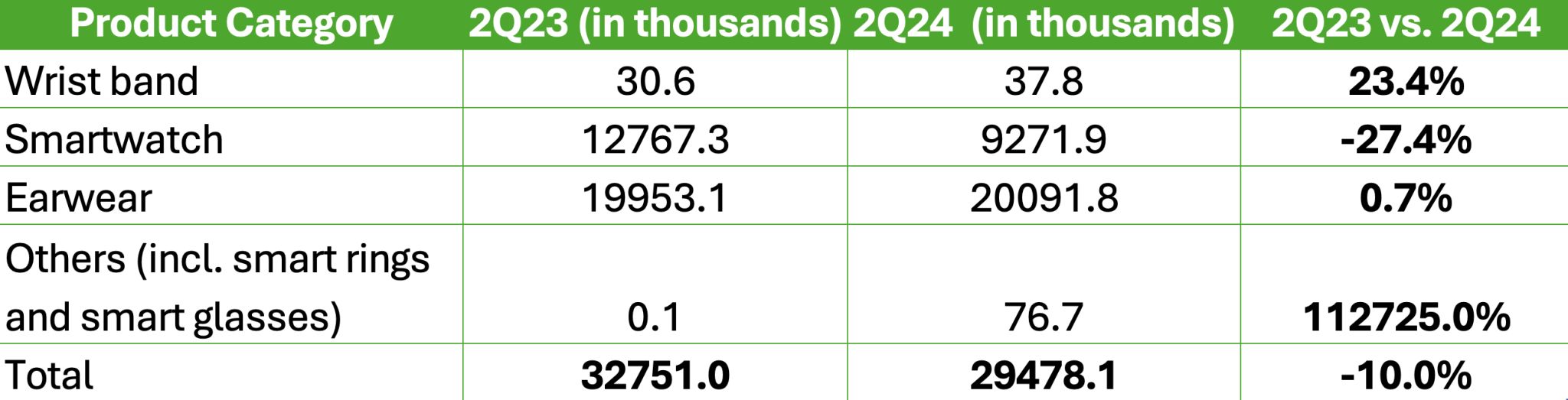 与第二季度相比,[耳机]第三季度的销量将非常大。相比之下,智能手表至少要到 2026 年才会出现增长。2026 年及以后,预计市场将在智能手表更新的使用案例的推动下复苏。