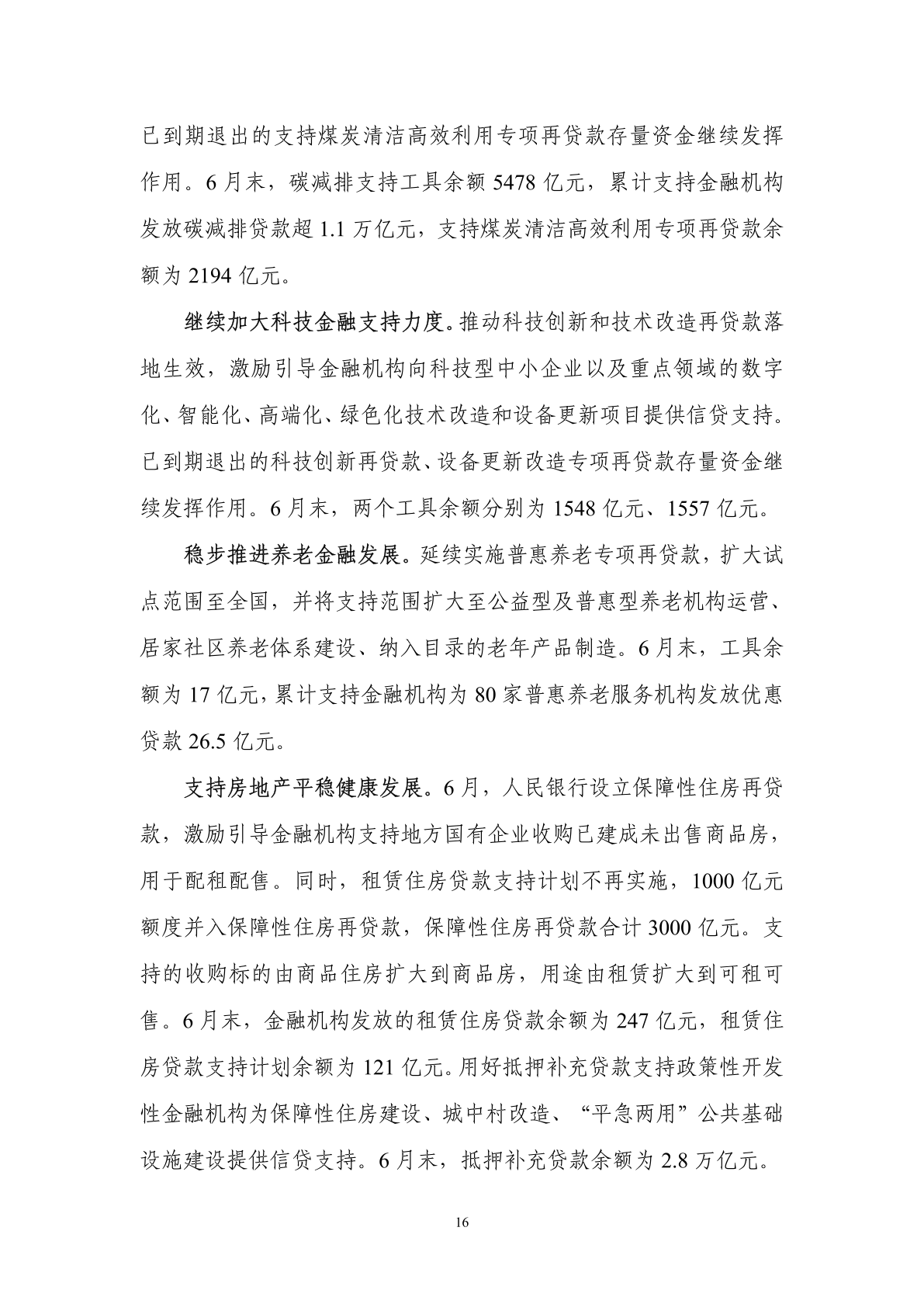 三是引导信贷结构调整优化。先后设立 5000 亿元科技创新和技术改 造再贷款、3000 亿元保障性住房再贷款;放宽普惠小微贷款认定标 准,扩大碳减排支持工具支持对象范围,落实好存续的各类结构性货 币政策工具;推出房地产支持政策组合,降低个人住房贷款最低首付 比例、取消个人房贷利率下限、下调公积金贷款利率。