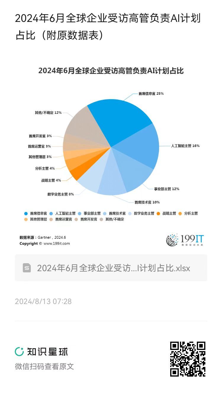 2024年6月全球企业受访高管负责AI计划占比(附原数据表) ​​​
