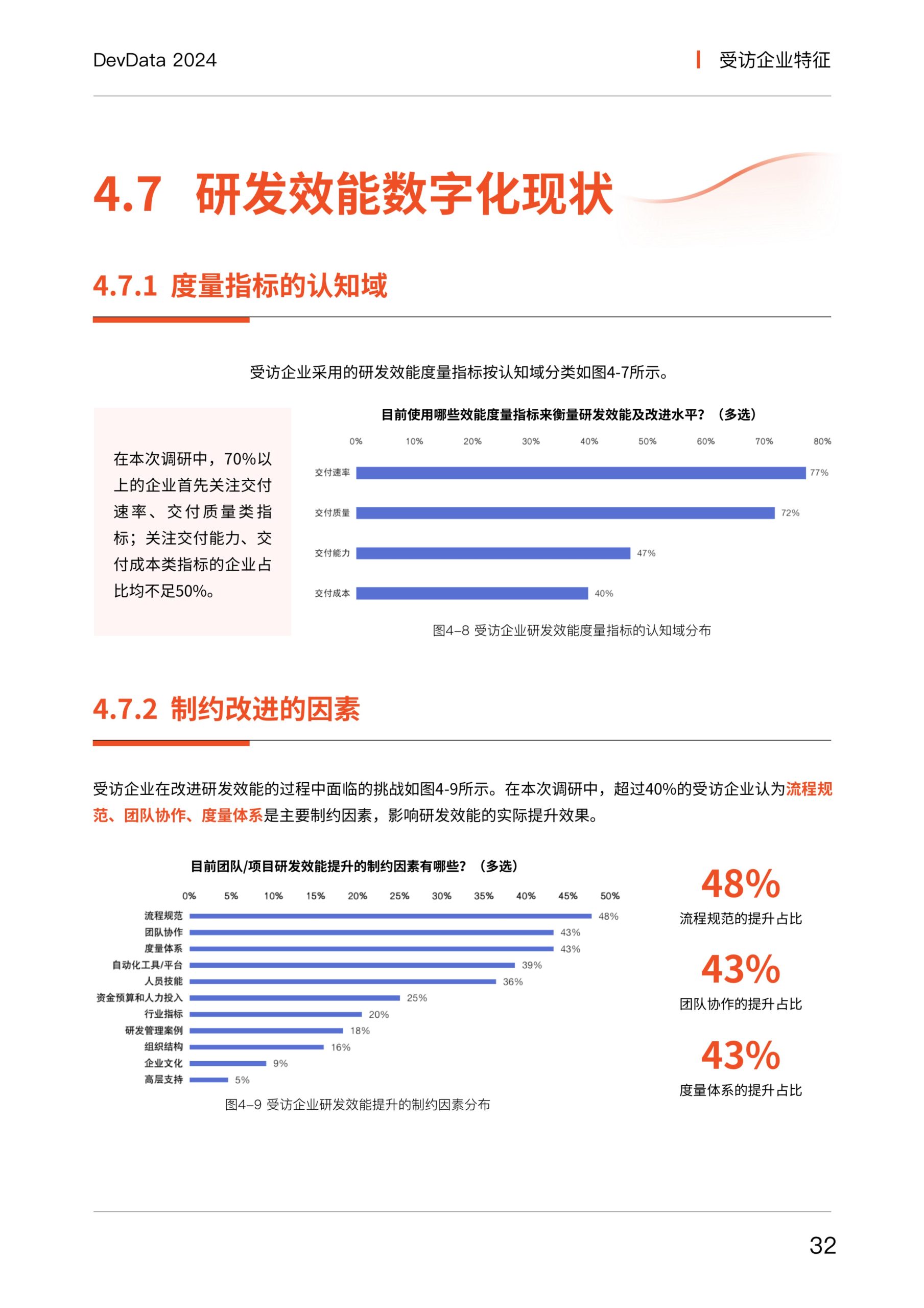 思码逸携手合作伙伴启动了DevData 2024研发效能基准调研,并联合中国信息通信研究院(简称“中国信通院”)、QECon、InfoQ研究中心、TGO鲲鹏会等机构共同发布《DevData 2024 研发效能基准报告》(以下简称“报告”),帮助管理者了解企业在行业中的研发效能水平,识别自身短板,找准提升方向,从而在快速变化的产业格局中做出正确定位,选择有效战略,在未来市场竞争中抢占先机。