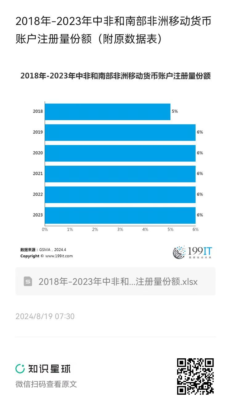 2018年-2023年中非和南部非洲移动货币账户注册量份额(附原数据表) ​​​