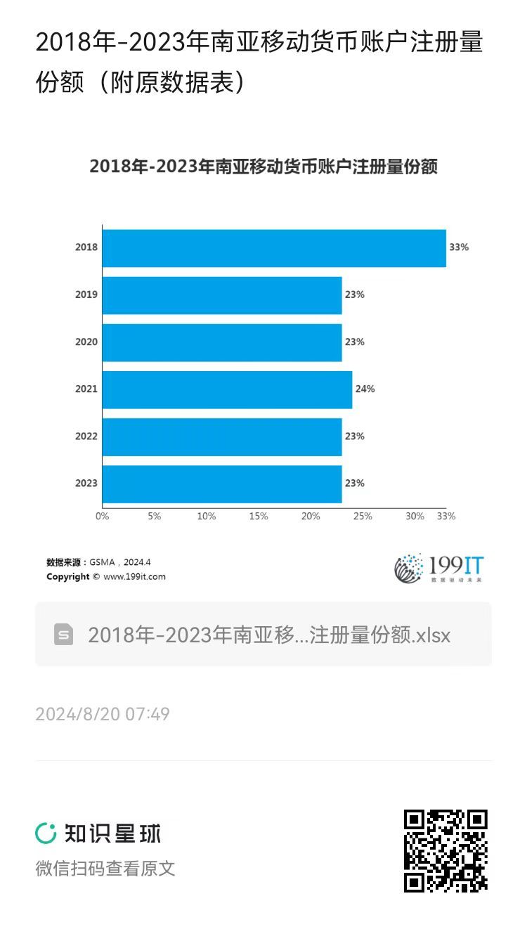 2018年-2023年南亚移动货币账户注册量份额(附原数据表) ​​​