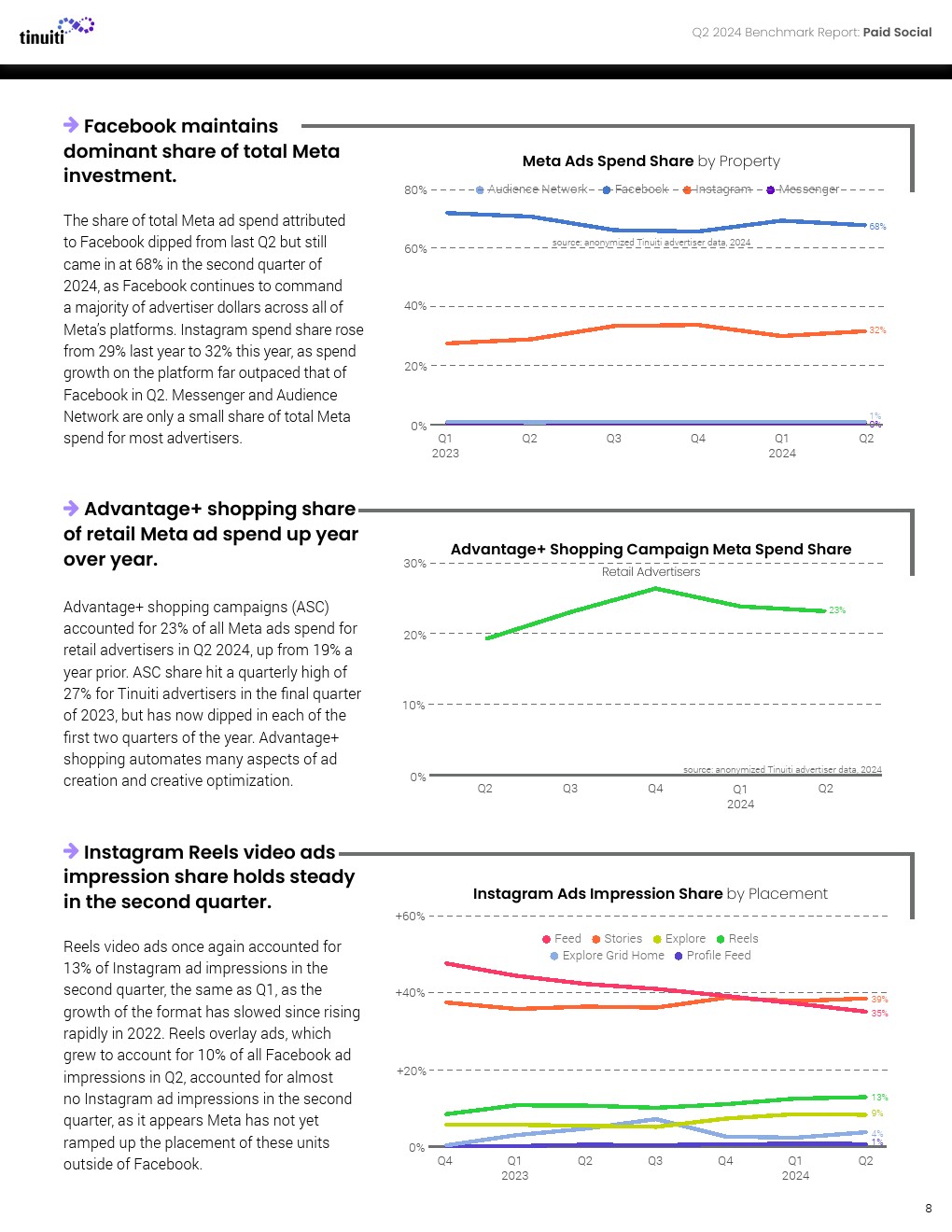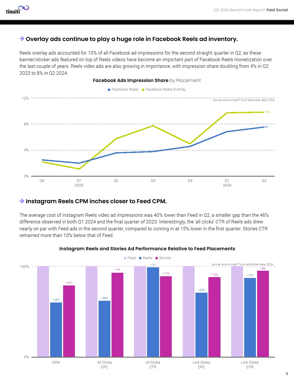虽然Facebook继续看到Reels视频和Reels覆盖广告的增长,但Reels视频广告在Instagram上的展示份额增长明显放缓,Meta尚未在Facebook之外增加Reels覆盖广告。