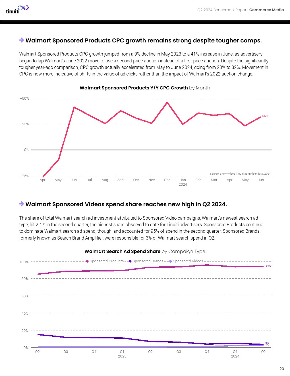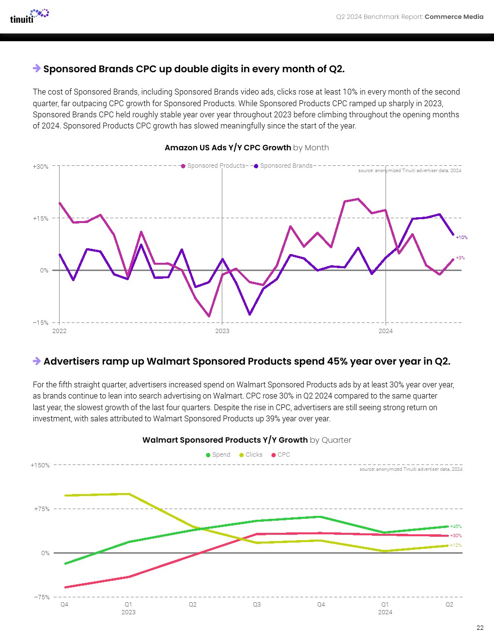 沃尔玛赞助产品的支出持续增长,广告客户在第二季度的投资同比增长了45%。这是沃尔玛赞助产品支出连续第五个季度增长超过30%。