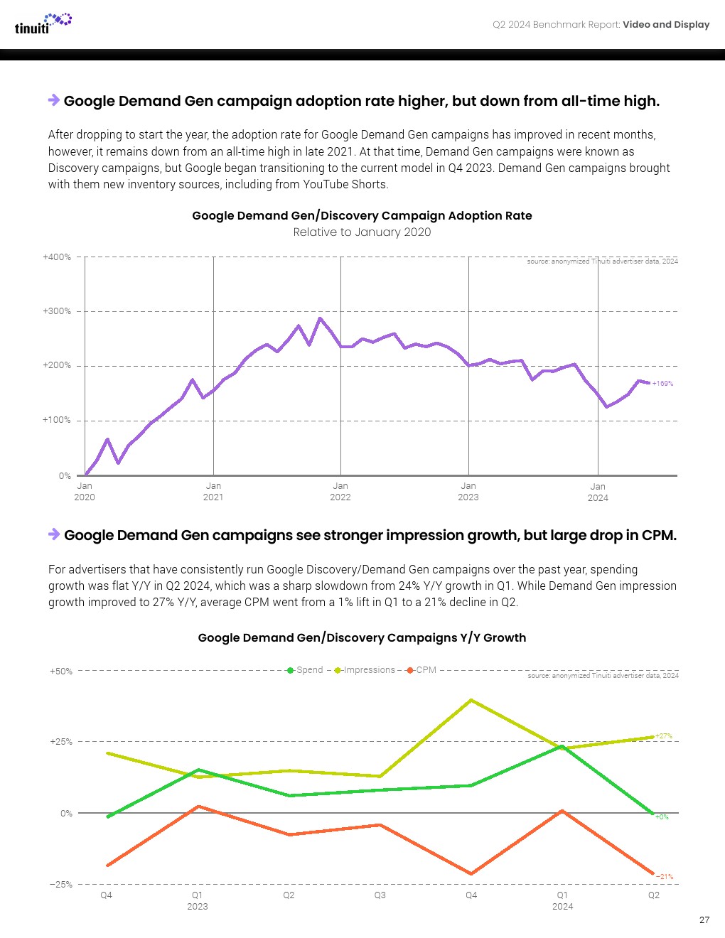 另一方面,YouTube在2024年第一季度和第二季度之间的CPM增长率急剧下降,第二季度CPM同比下降26%,而第一季度下降3%。