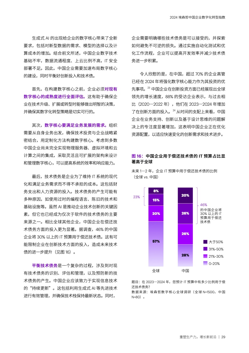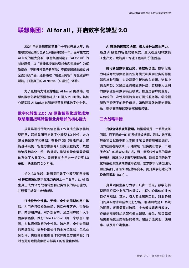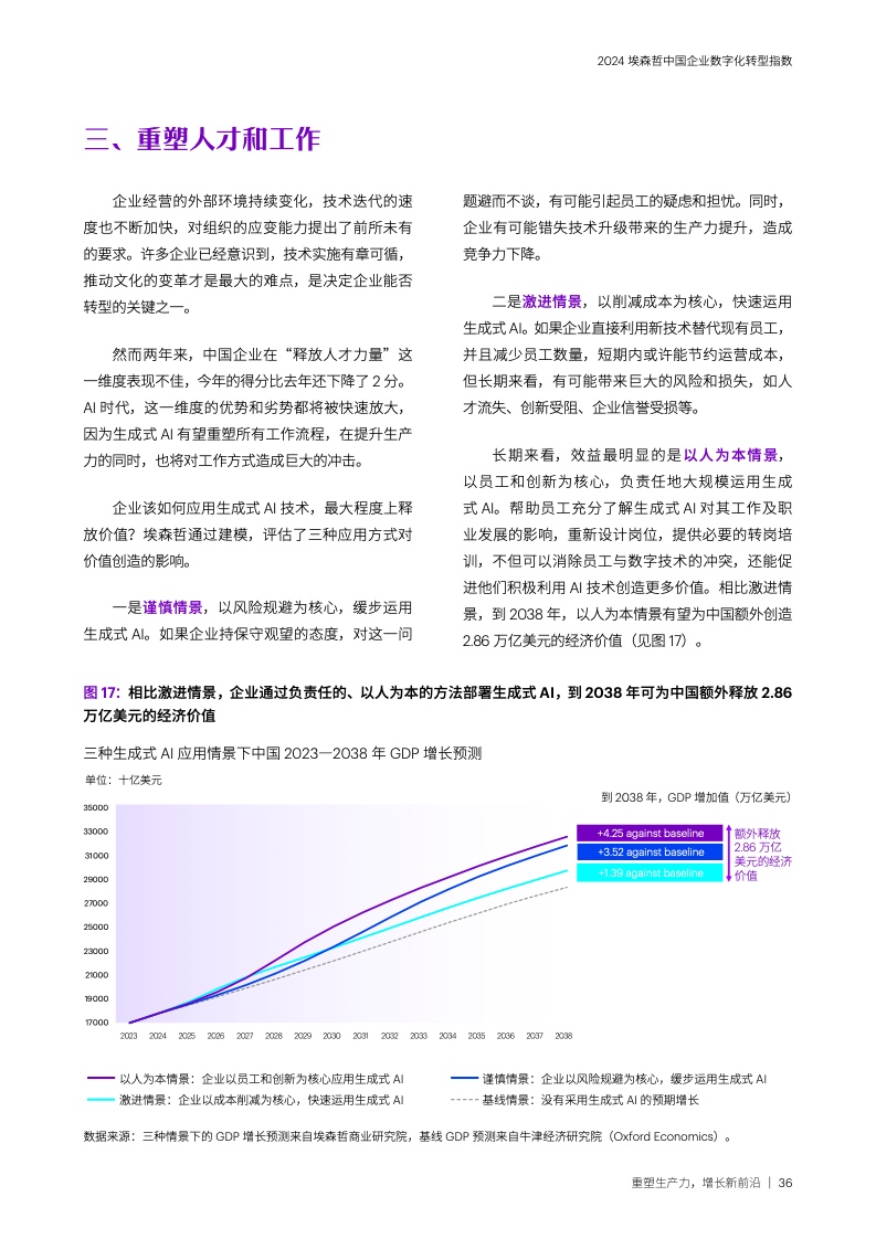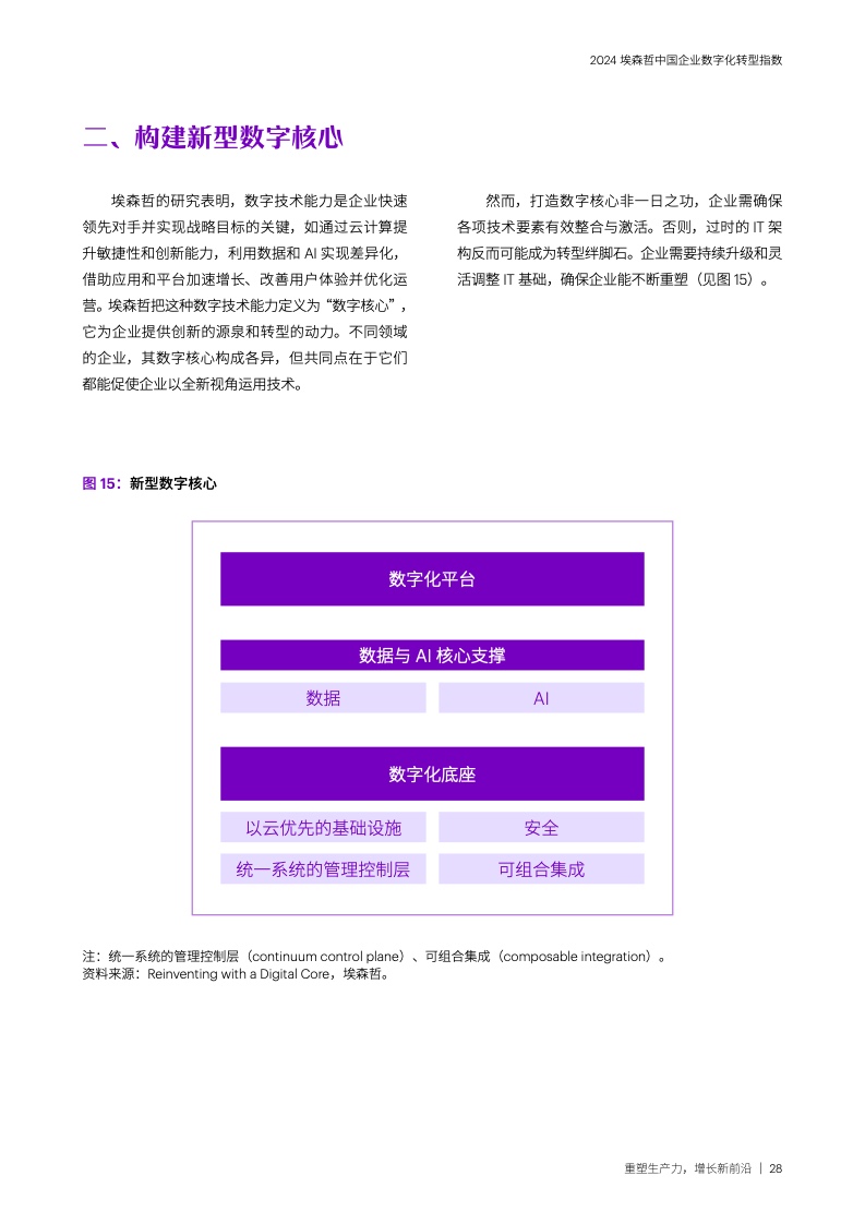 埃森哲研究发现,重塑者 2019 年至 2022 年的 营收复合增长率比其他企业高出 15 个百分点,利润 率比其他企业高 5.6 个百分点。建模结果显示,预 计到 2026 年,重塑者与其他企业的营收增长差距 将扩大 2.4 倍,达到 37 个百分点,且每年的利润率 将比其他企业高出 2.9 个百分点。