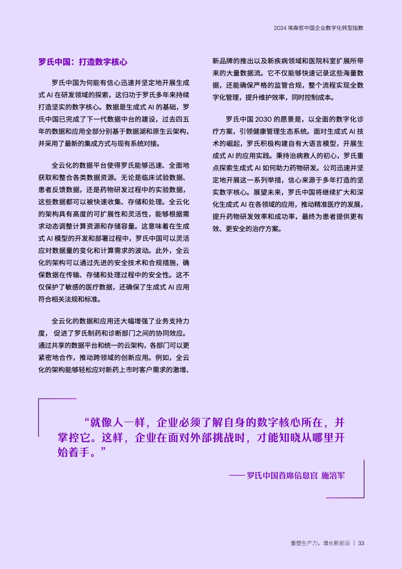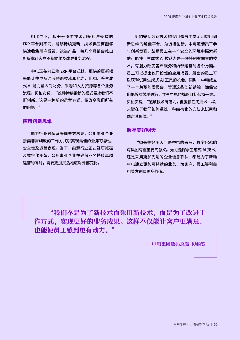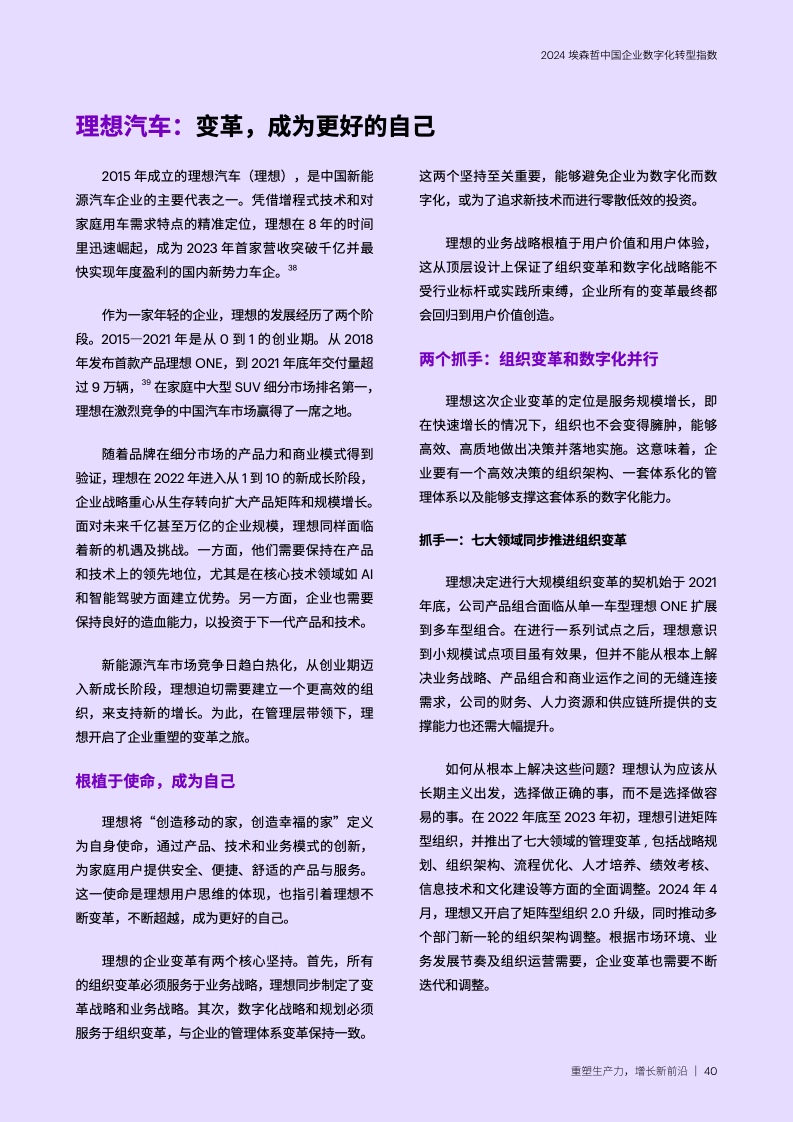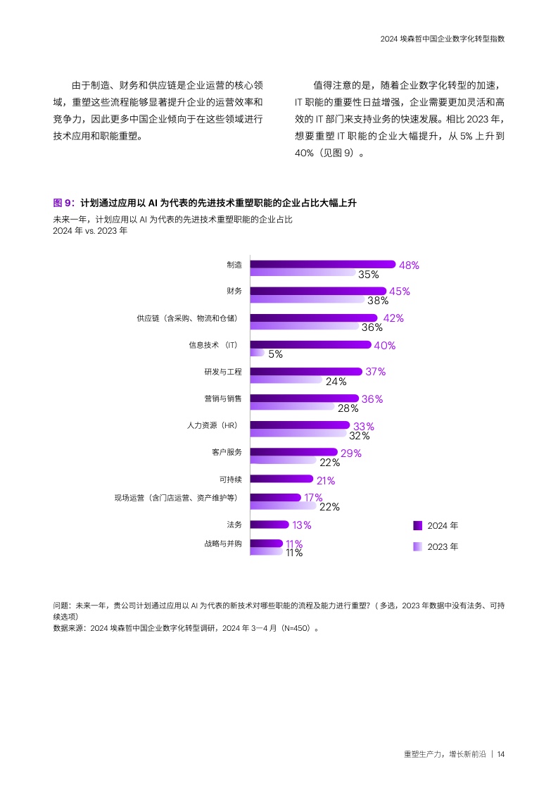 埃森哲研究发现,重塑者 2019 年至 2022 年的 营收复合增长率比其他企业高出 15 个百分点,利润 率比其他企业高 5.6 个百分点。建模结果显示,预 计到 2026 年,重塑者与其他企业的营收增长差距 将扩大 2.4 倍,达到 37 个百分点,且每年的利润率 将比其他企业高出 2.9 个百分点。