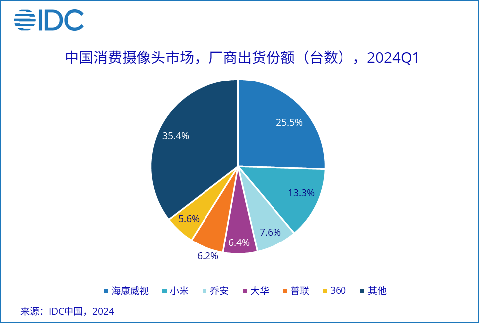 IDC最近发布的《全球智能家居设备市场季度跟踪报告,2024年第一季度》显示,一季度全球智能摄像头市场(包含消费级室内和室外摄像头,含运营商)渠道)出货量3,153万台,同比增长10.3%。从出货区域来看,其中美国市场出货量1,306万台,占全球出货量的41.4%,中国市场出货量1,138万台紧随其后,占全球市场的36.1%。产品升级加速复工后出行频率恢复带来的观看需求提升,智能摄像头市场在季度加速回暖。