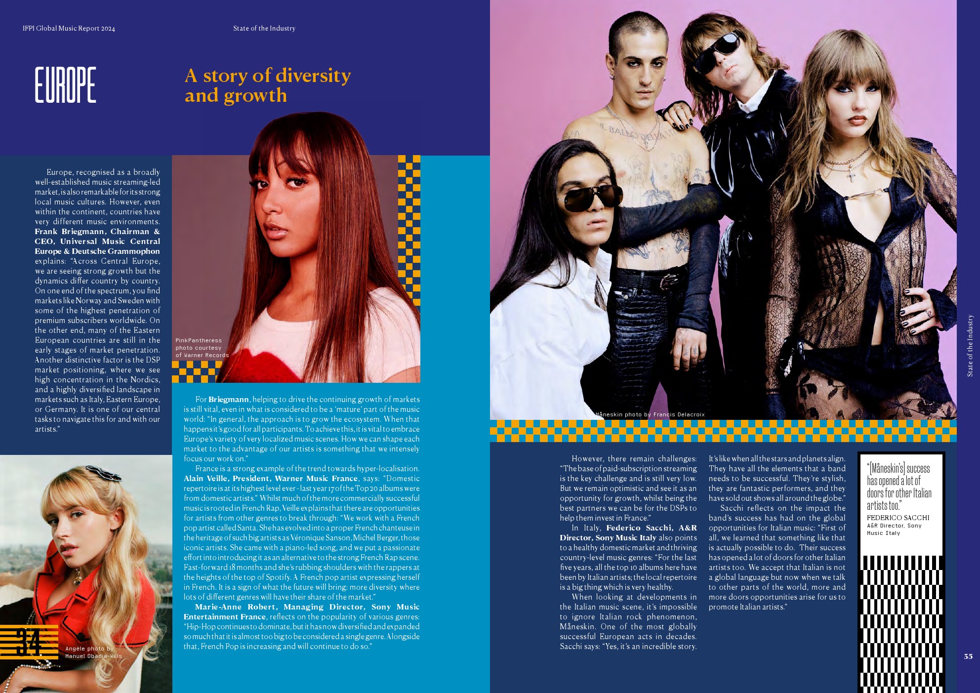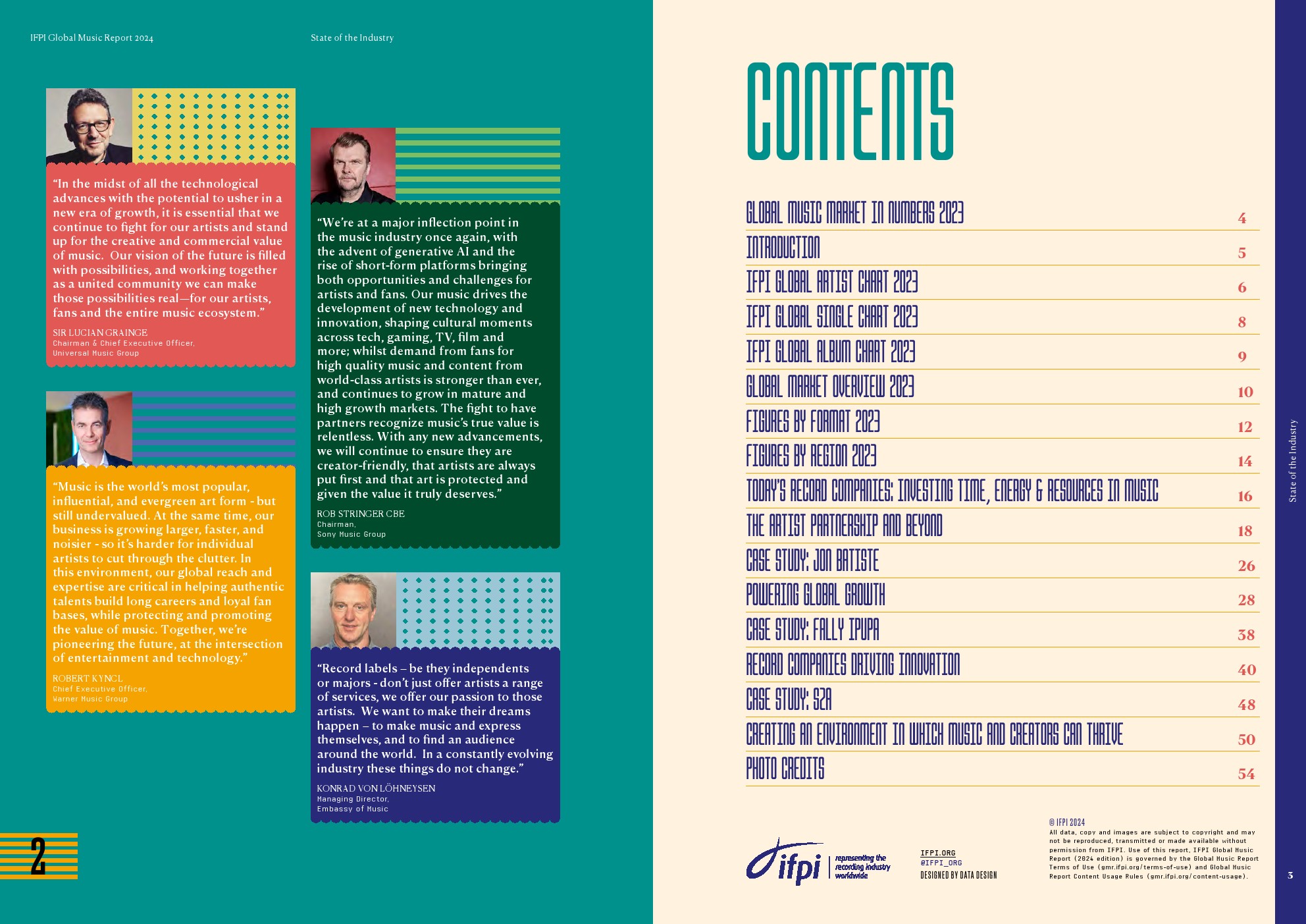 美国和加拿大在全球唱片收入中所占份额最大(40.9%),2023年增长了7.4%。收入增长速度快于2022年(+5.1%)。全球最大的唱片市场——美国的收入增长了7.2%。加拿大是另一个排名前十的音乐市场,收入增长了12.2%。