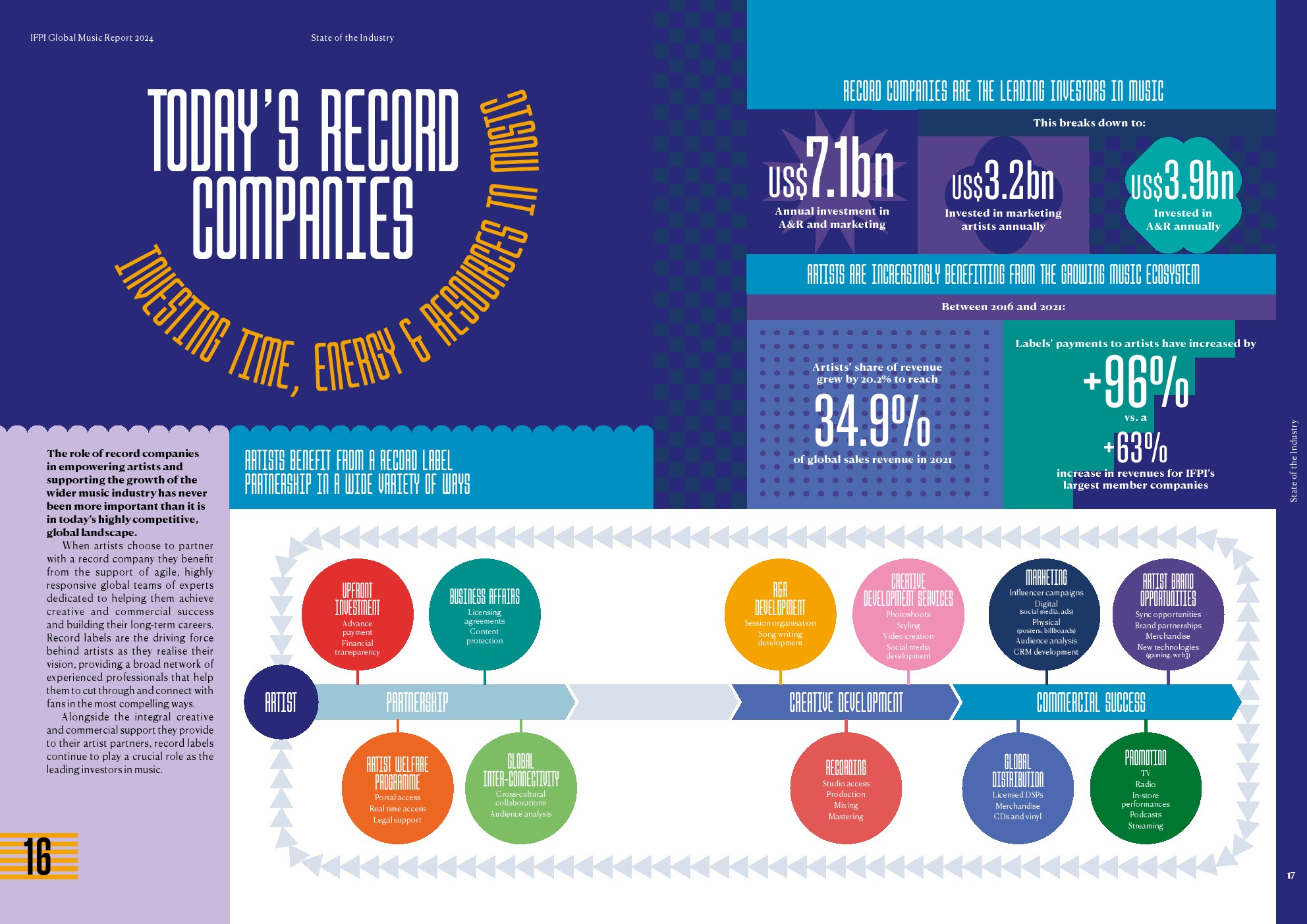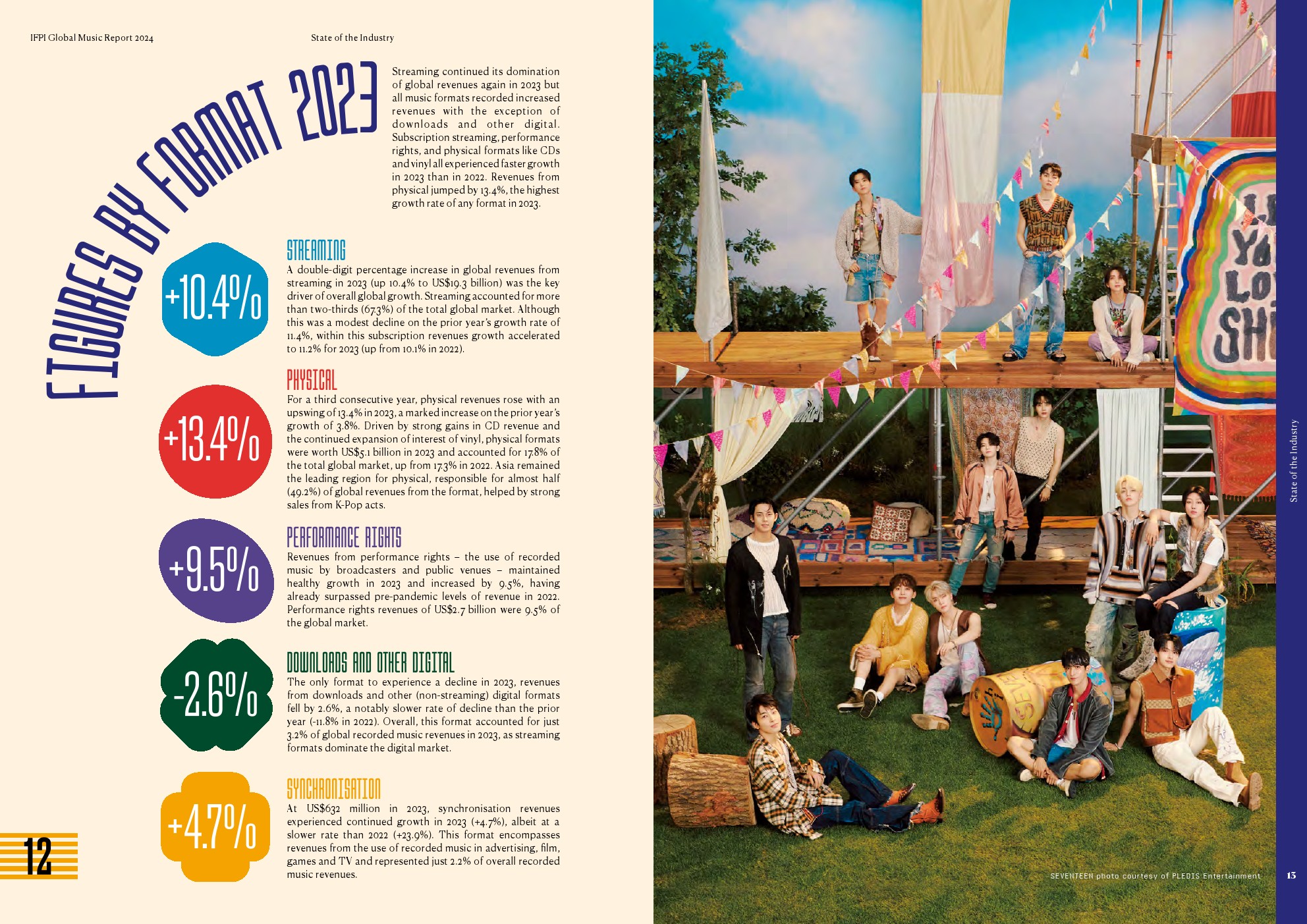 实体收入增长了两位数(+13.4%),表演权收入增长了9.5%。