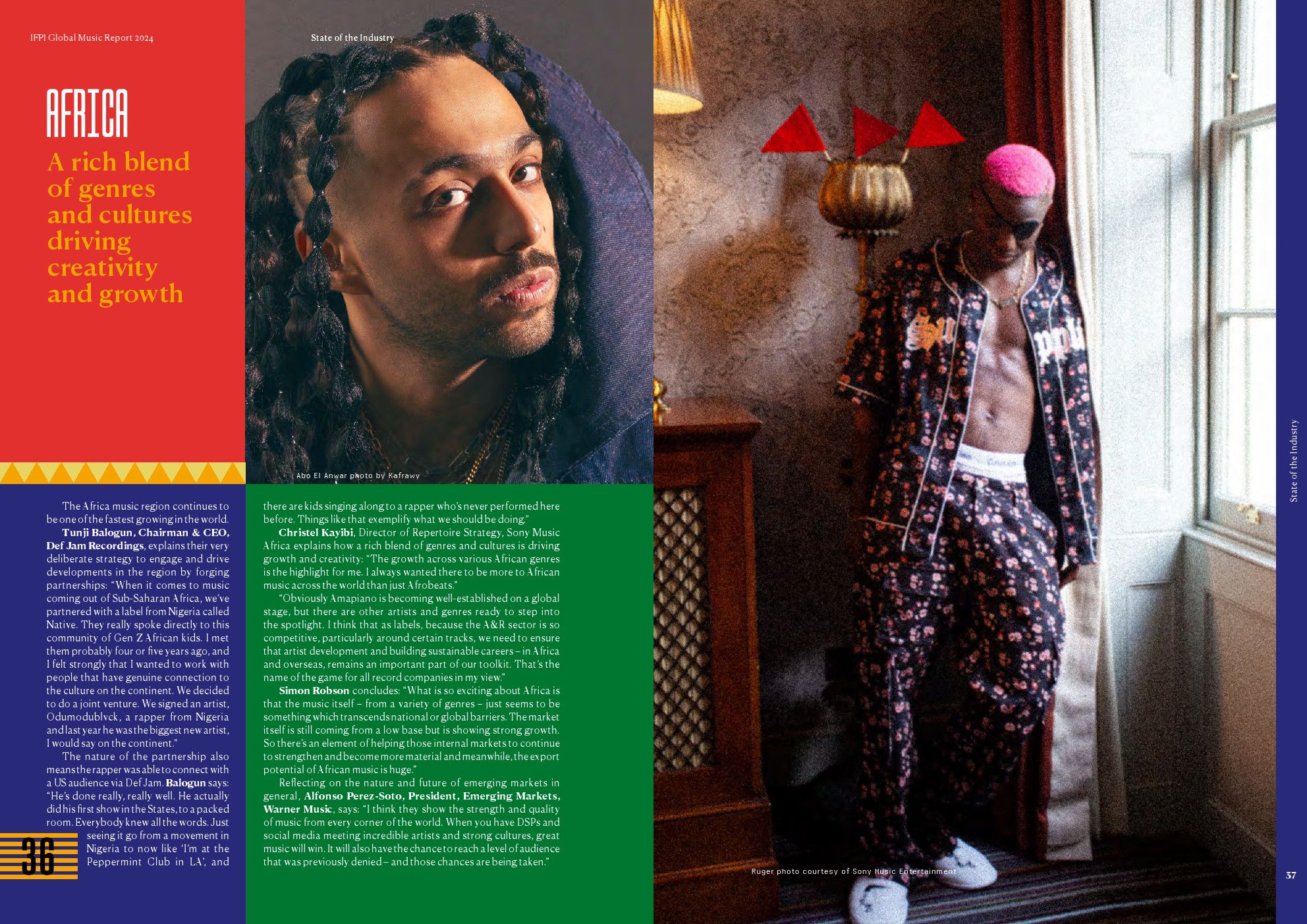 撒哈拉以南非洲地区再次成为所有地区中增长最快的,也是唯一一个增长超过20%的地区:在付费流媒体收入增长(+24.5%)的推动下,收入增长了24.7%。南非仍然是该地区最大的市场,音乐收入增长19.9%,贡献了77%的地区收入。