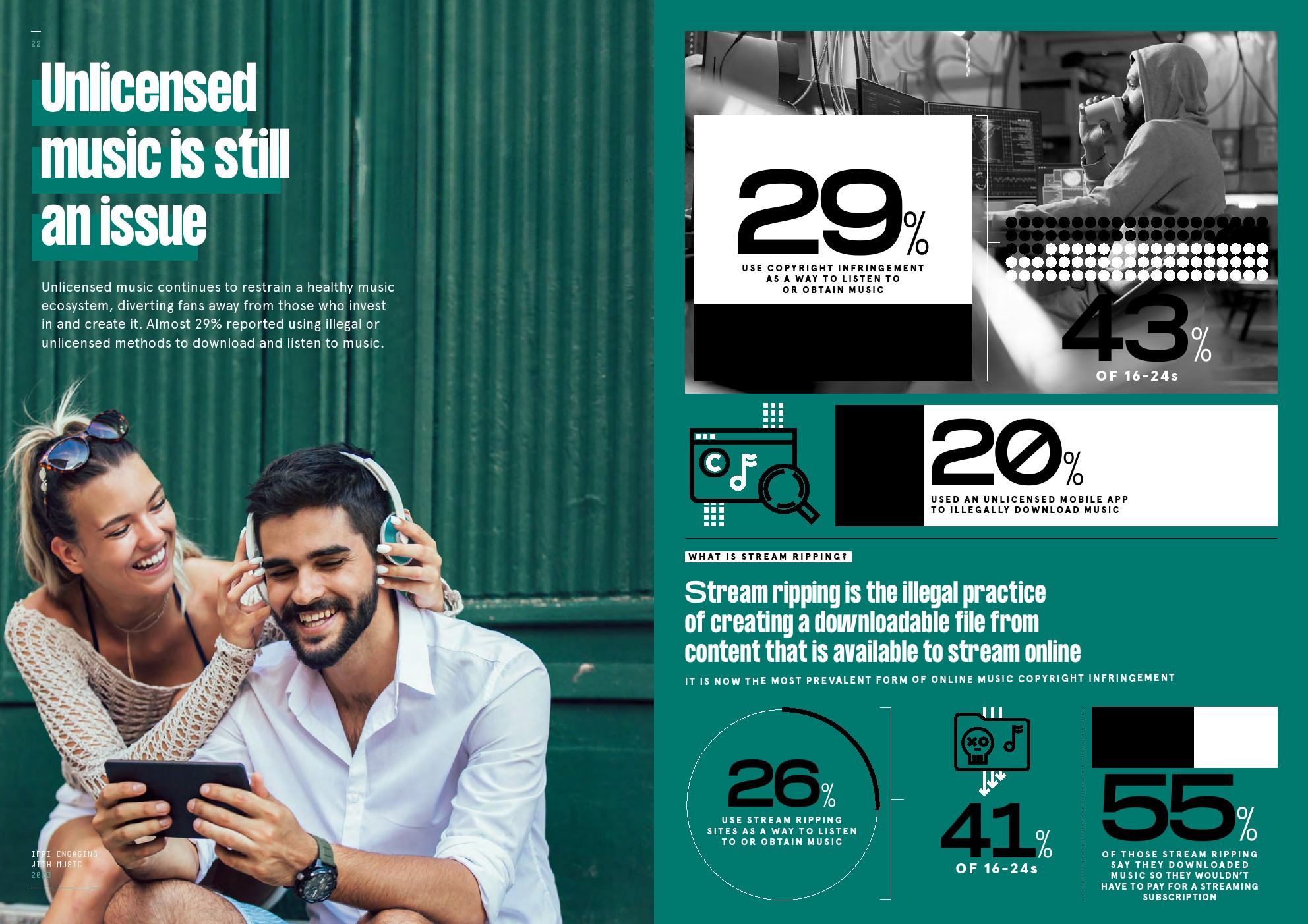 29%的受访者使用未经许可或非法的方式收听或获取音乐。