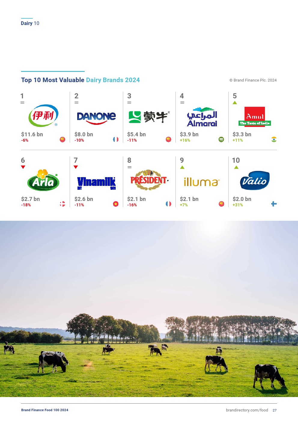 - 前十大乳制品品牌的总品牌价值今年创纪录地下降了6%,达到438亿美元。
