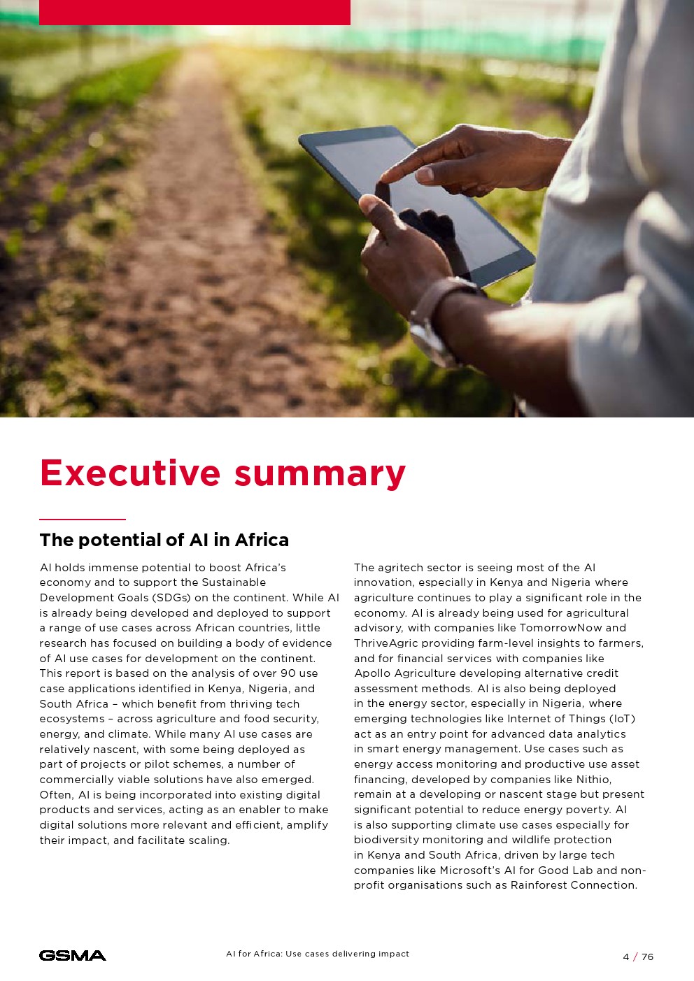 GSMA已将南非确定为利用人工智能(AI)促进社会经济发展和气候影响的关键参与者。在由英国外交、联邦和发展部(FCDO)资助的最新报告“非洲的人工智能——用例带来影响”中,GSMA强调尽管非洲目前仅占全球人工智能市场的2.5%,但根据AI4D Africa的研究,新兴的人工智能应用有可能在2030年之前推动非洲大陆的经济增长达到惊人的2.9万亿美元。