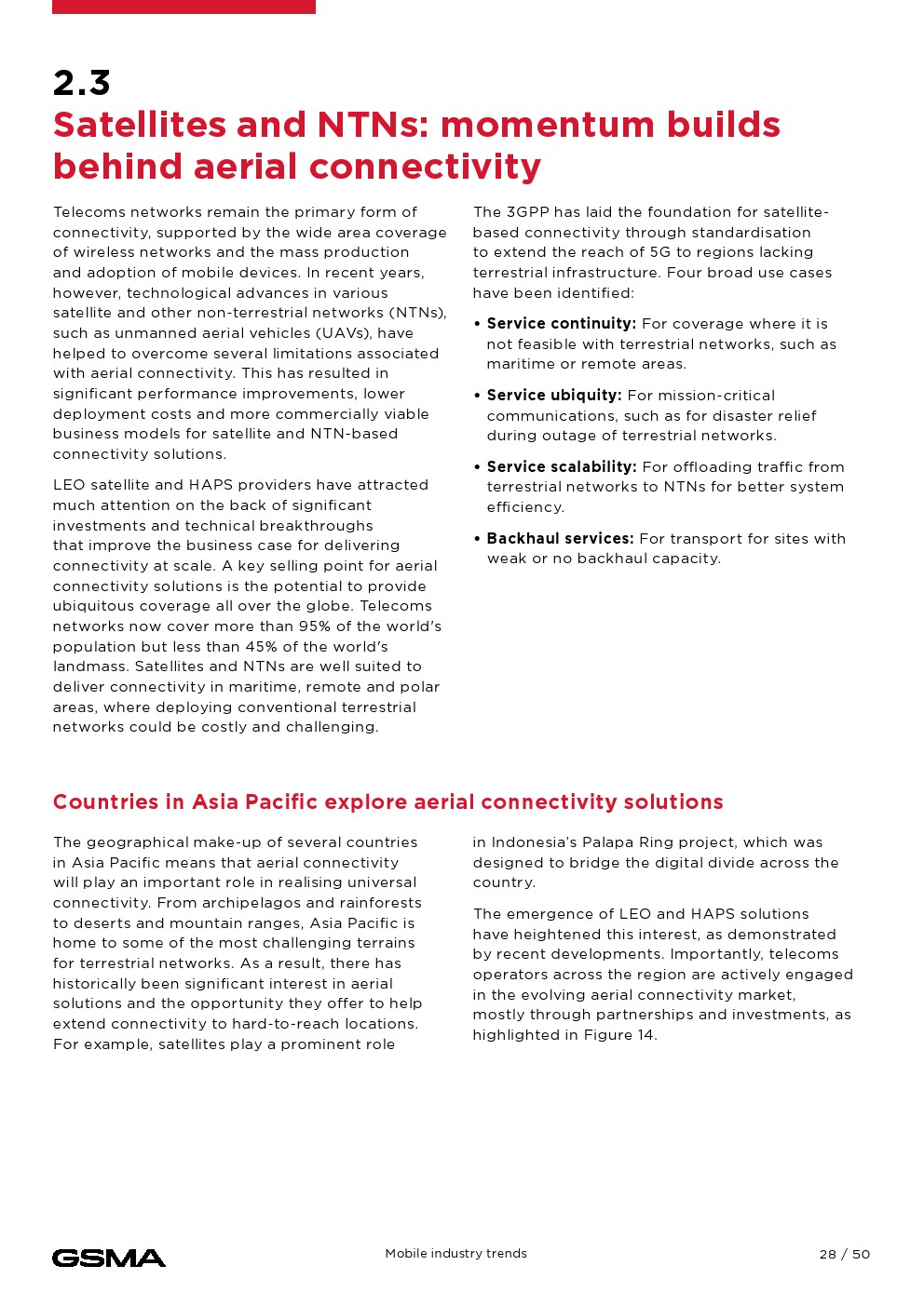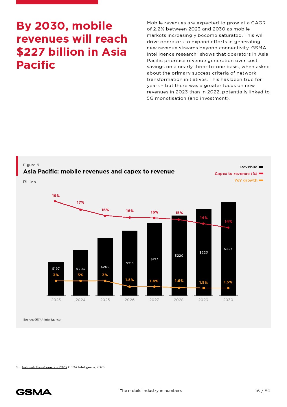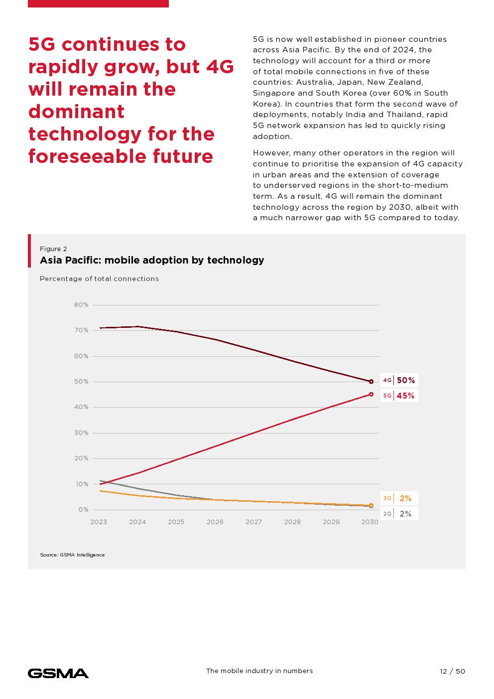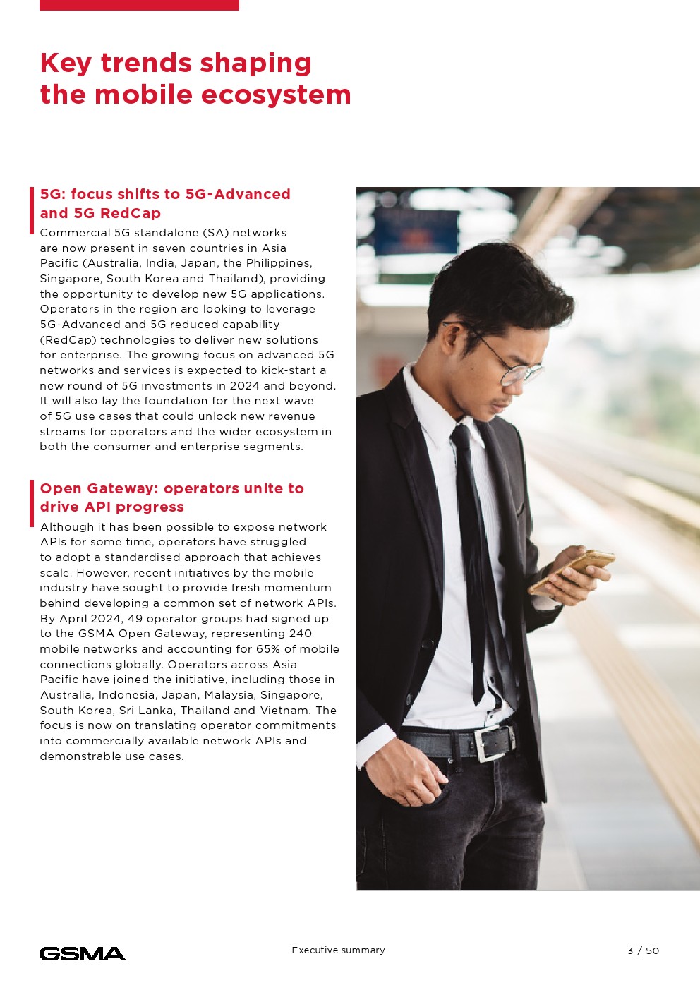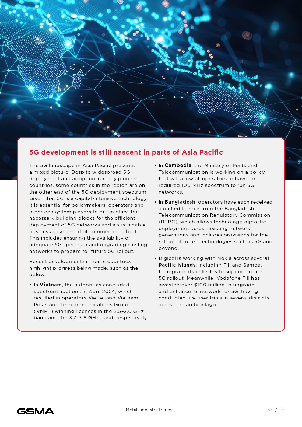 移动连接对经济的贡献证明了它的影响。2023年,移动技术和服务占亚太地区GDP的5.3%,经济增加值达8800亿美元,并为该地区提供约1300万个就业岗位。