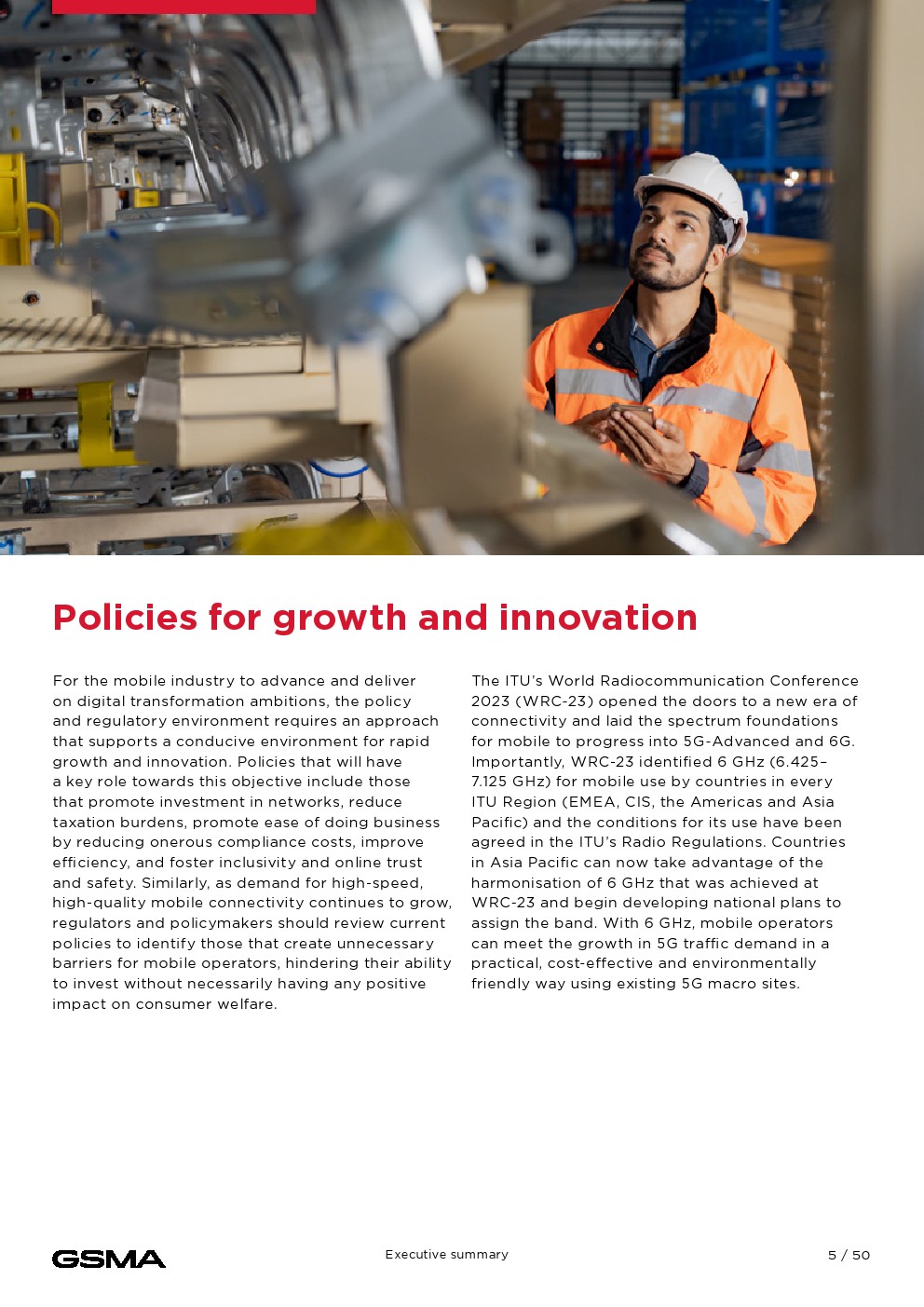 为了推动和实现移动行业的数字化转型目标,政策和监管环境需要一种支持快速增长和创新的有利环境的方法。将在实现这一目标方面发挥关键作用的政策包括:促进网络投资、减轻税收负担、通过降低繁重的合规成本促进营商便利、提高效率、促进包容性、在线信任和安全。