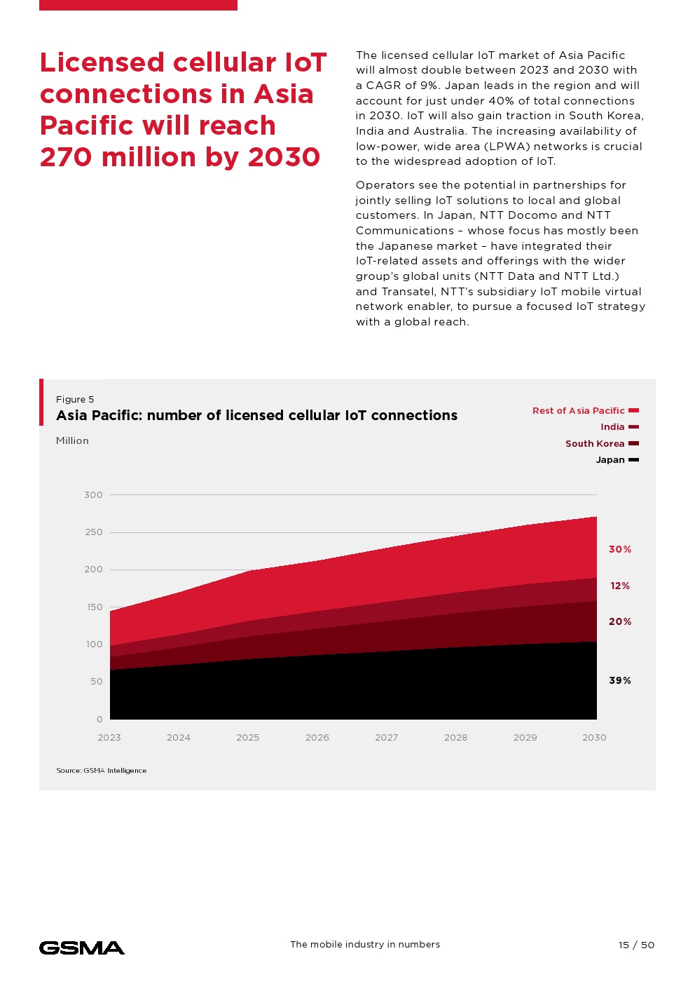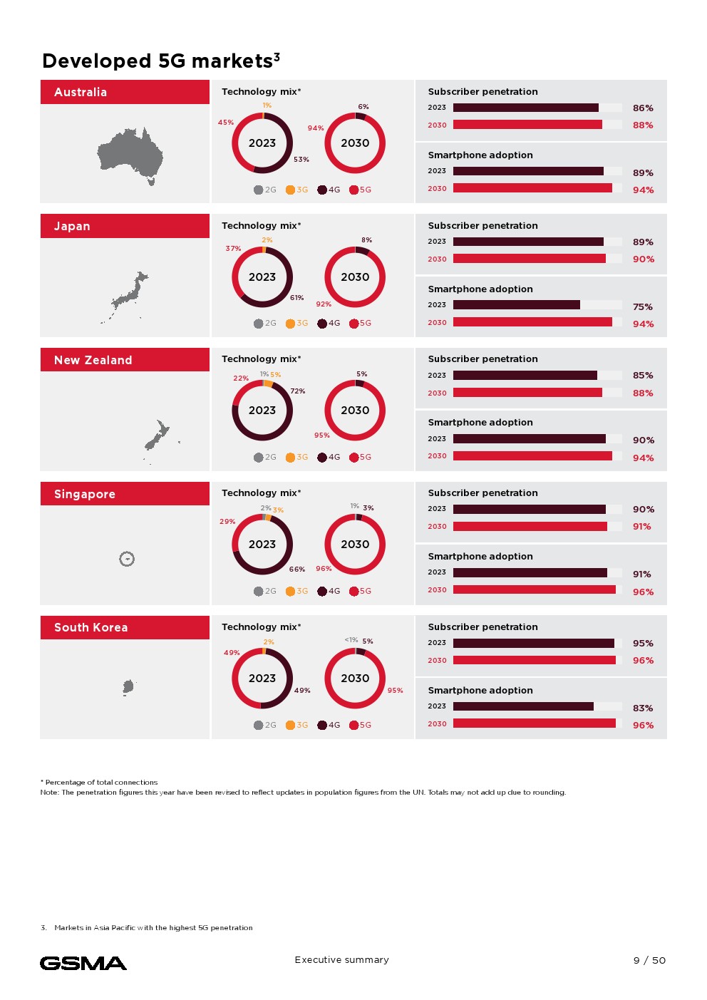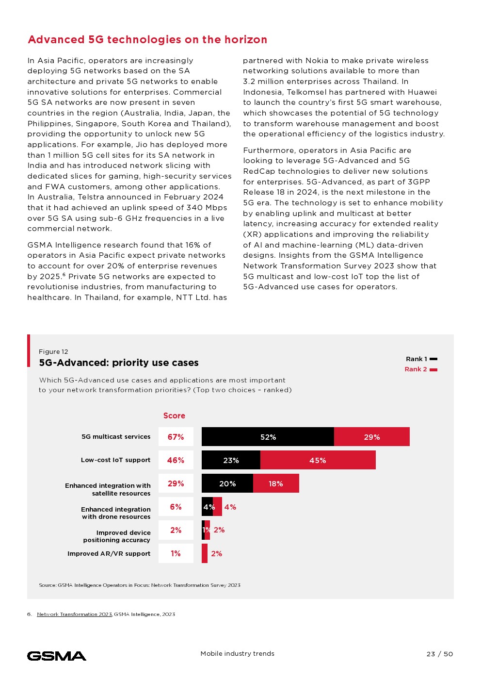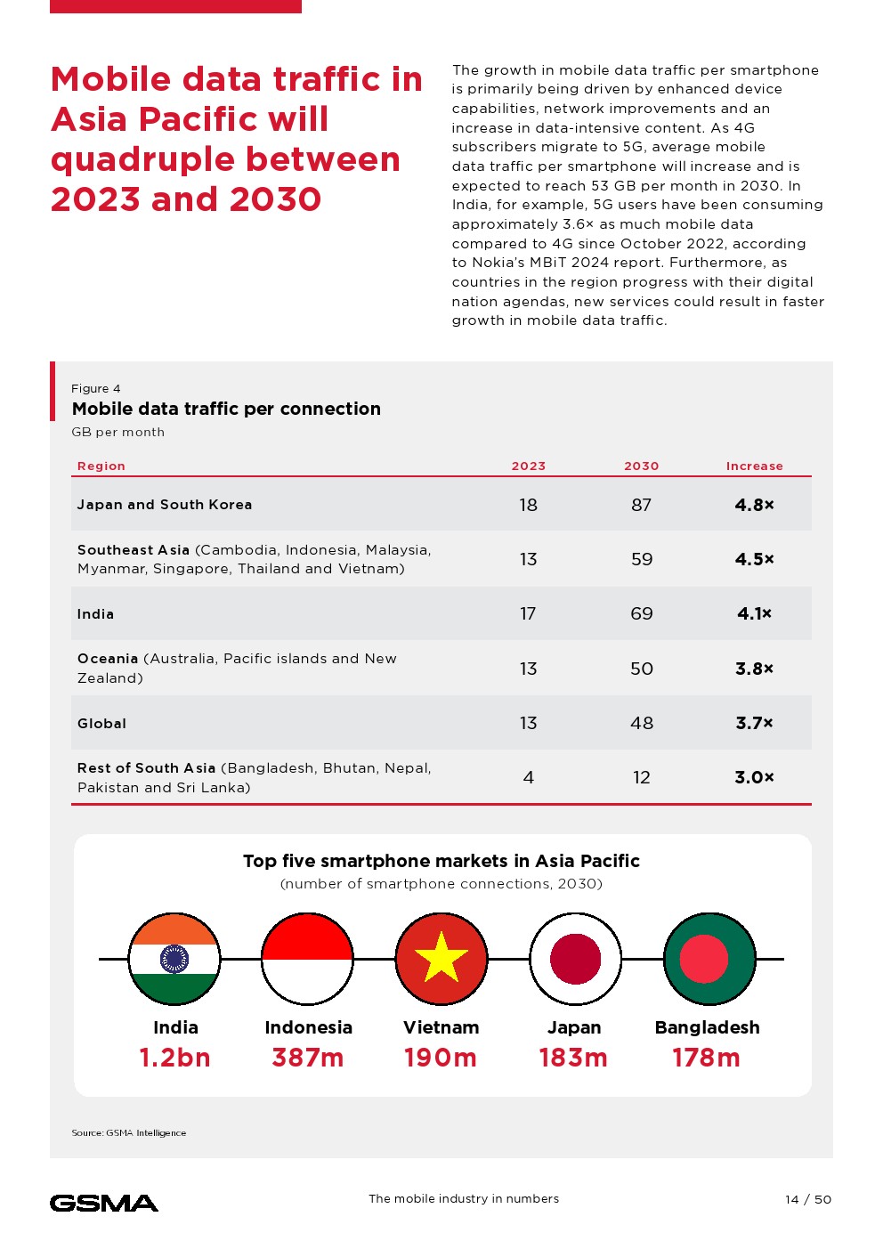 到2023年底,亚太地区将有18亿人(占总人口的63%)订阅移动服务。移动互联网普及率的增长非常显著。到2023年底,该地区51%的人口使用移动互联网,相当于14亿多用户,几乎是十年前的三倍。