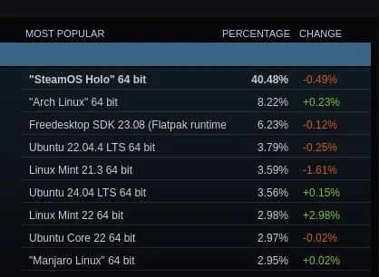 Steam Deck 上的 SteamOS 为约 40% 的联网 Linux 游戏系统贡献了平台。