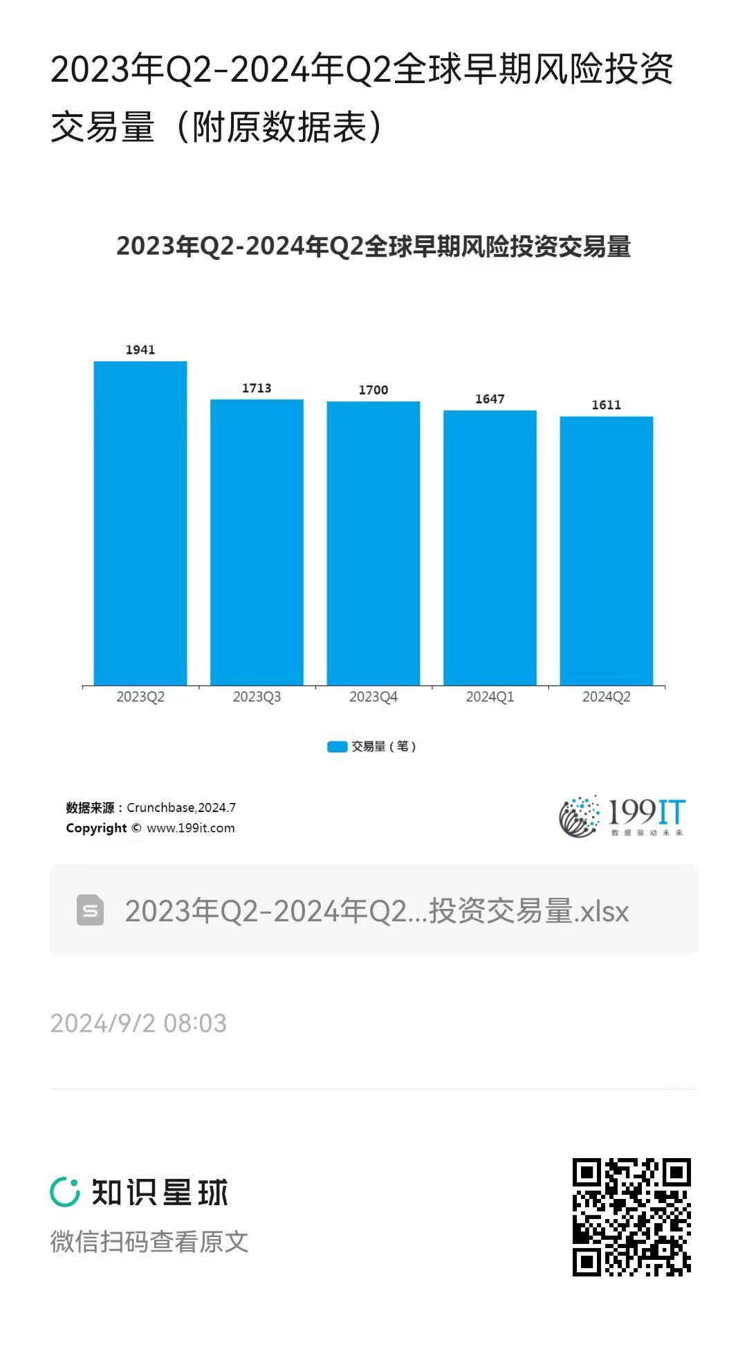 - 2022年Q3-2024年Q1全球早期风险投资交易额(附原数据表)