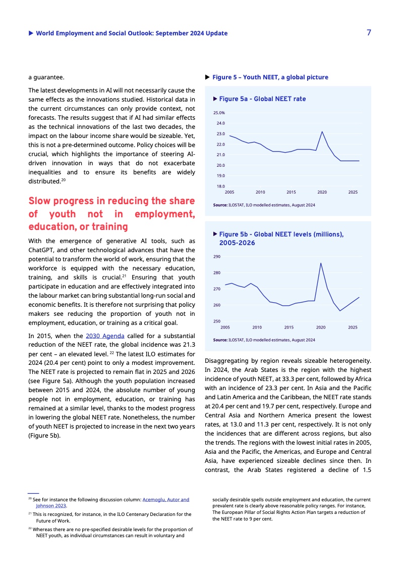 劳工组织报告的其他关键内容包括,全球青年失业率仅略微下降,从2015年的21.3%降至今年的20.4%。