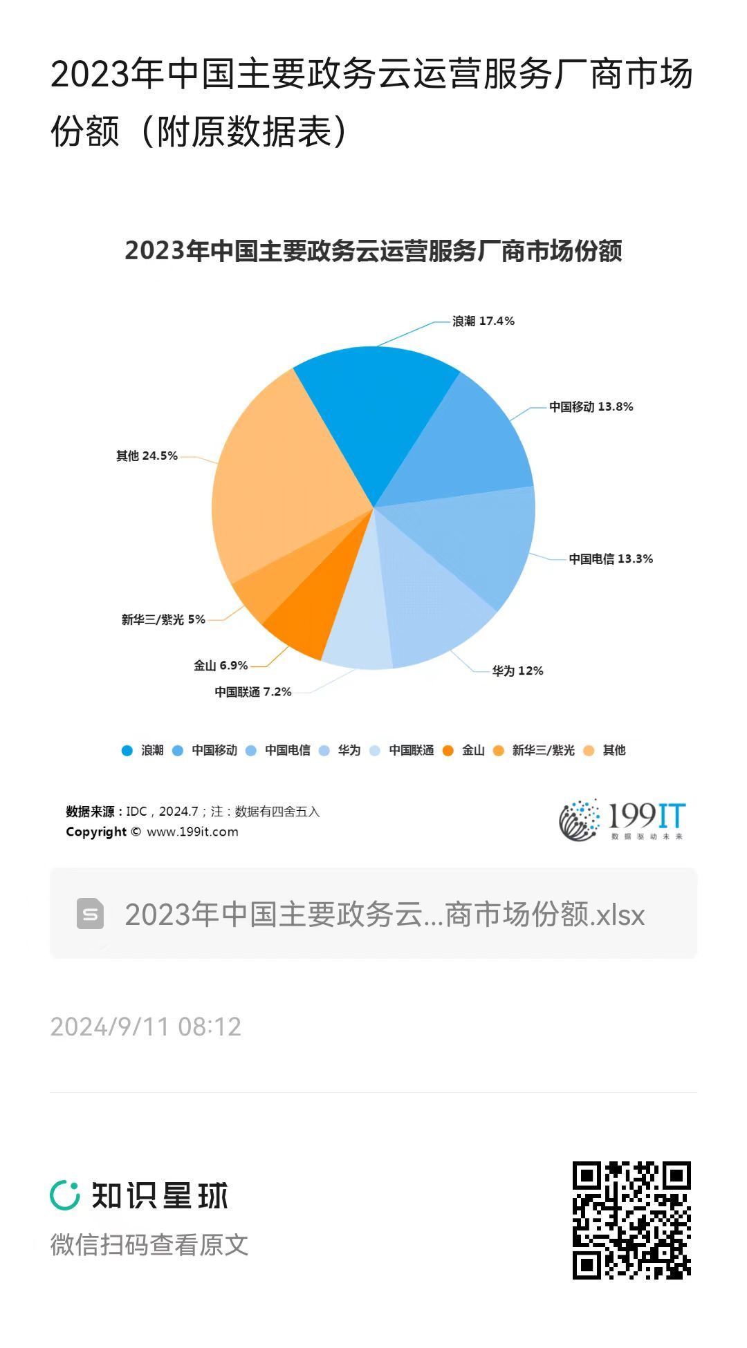 2023年中国主要政务云运营服务厂商市场份额(附原数据表) ​​​