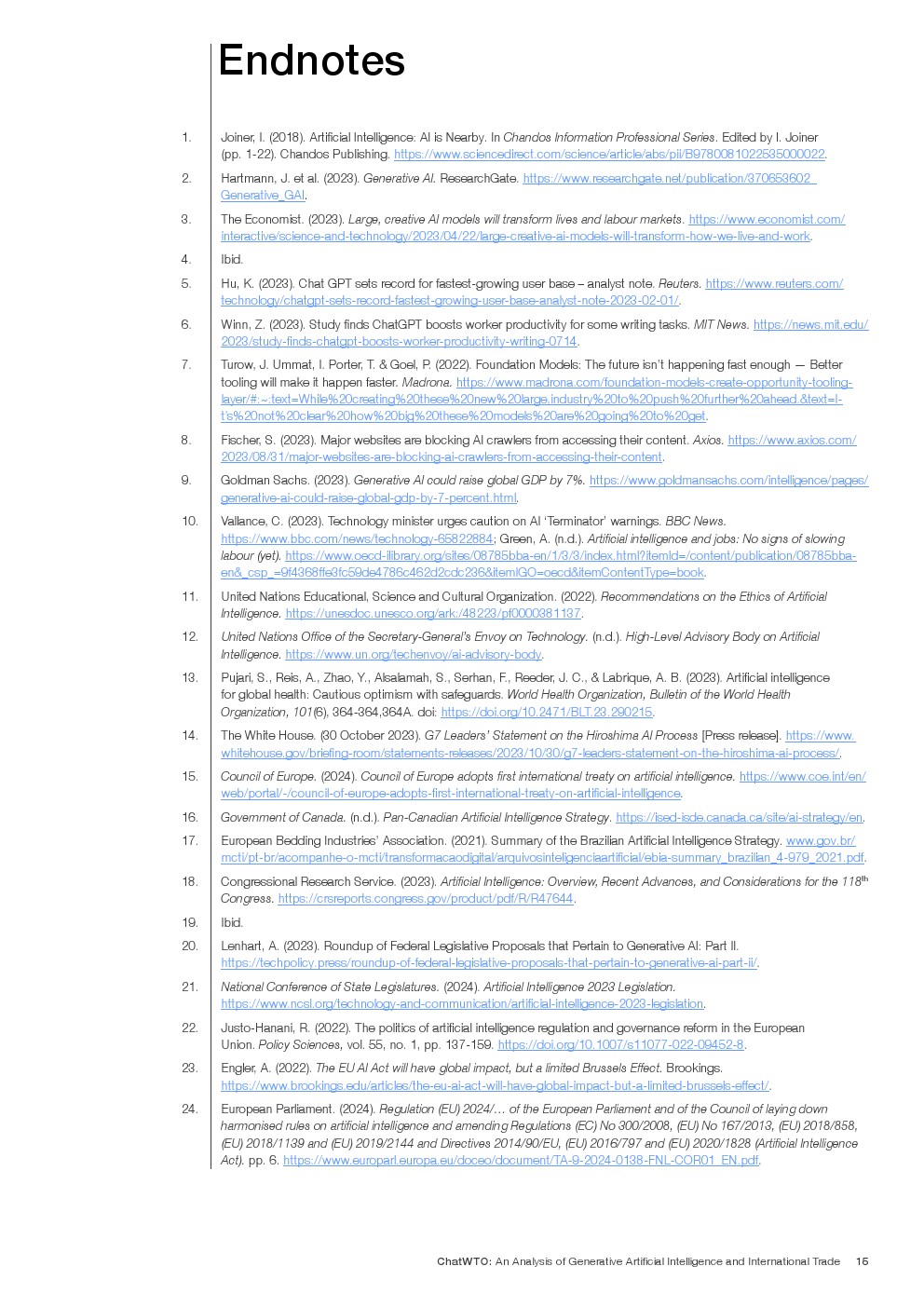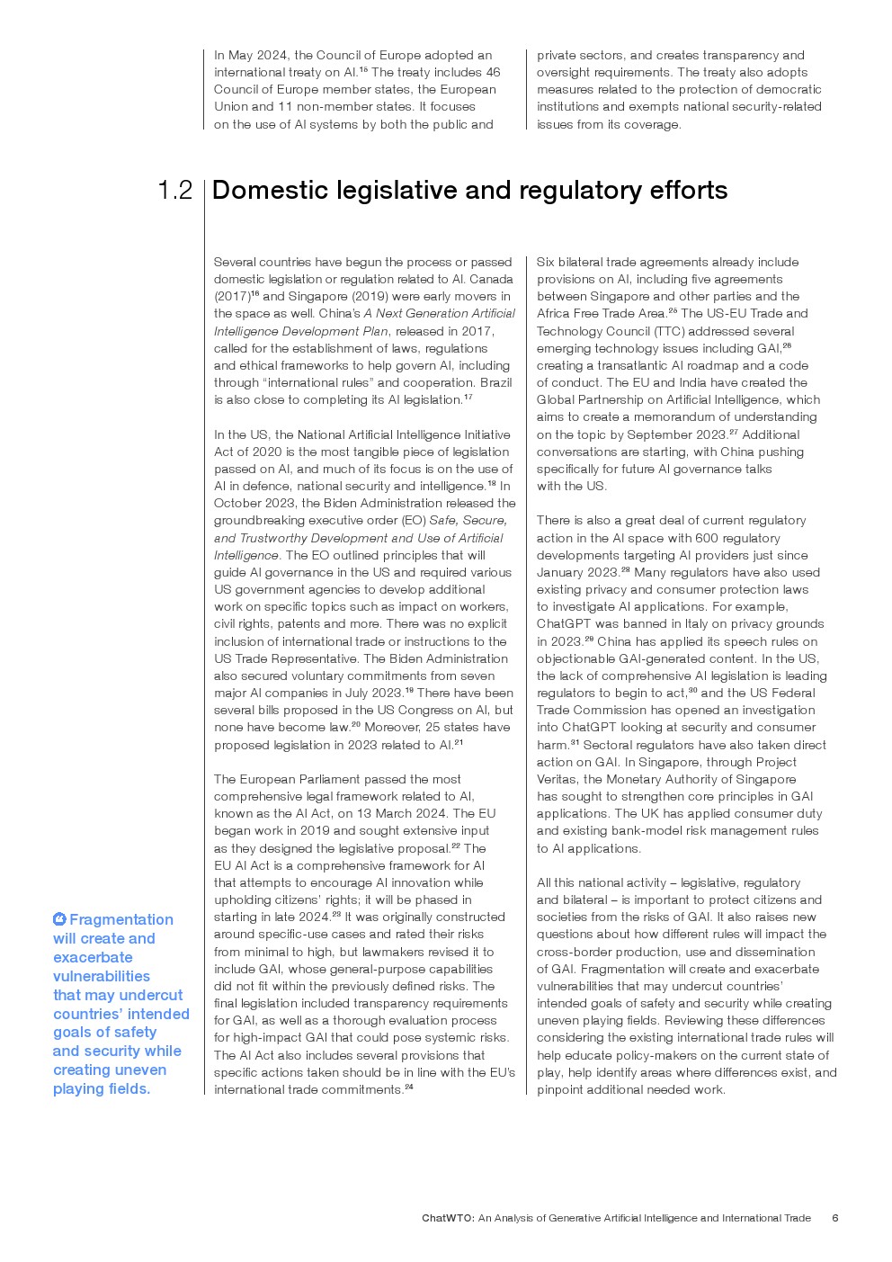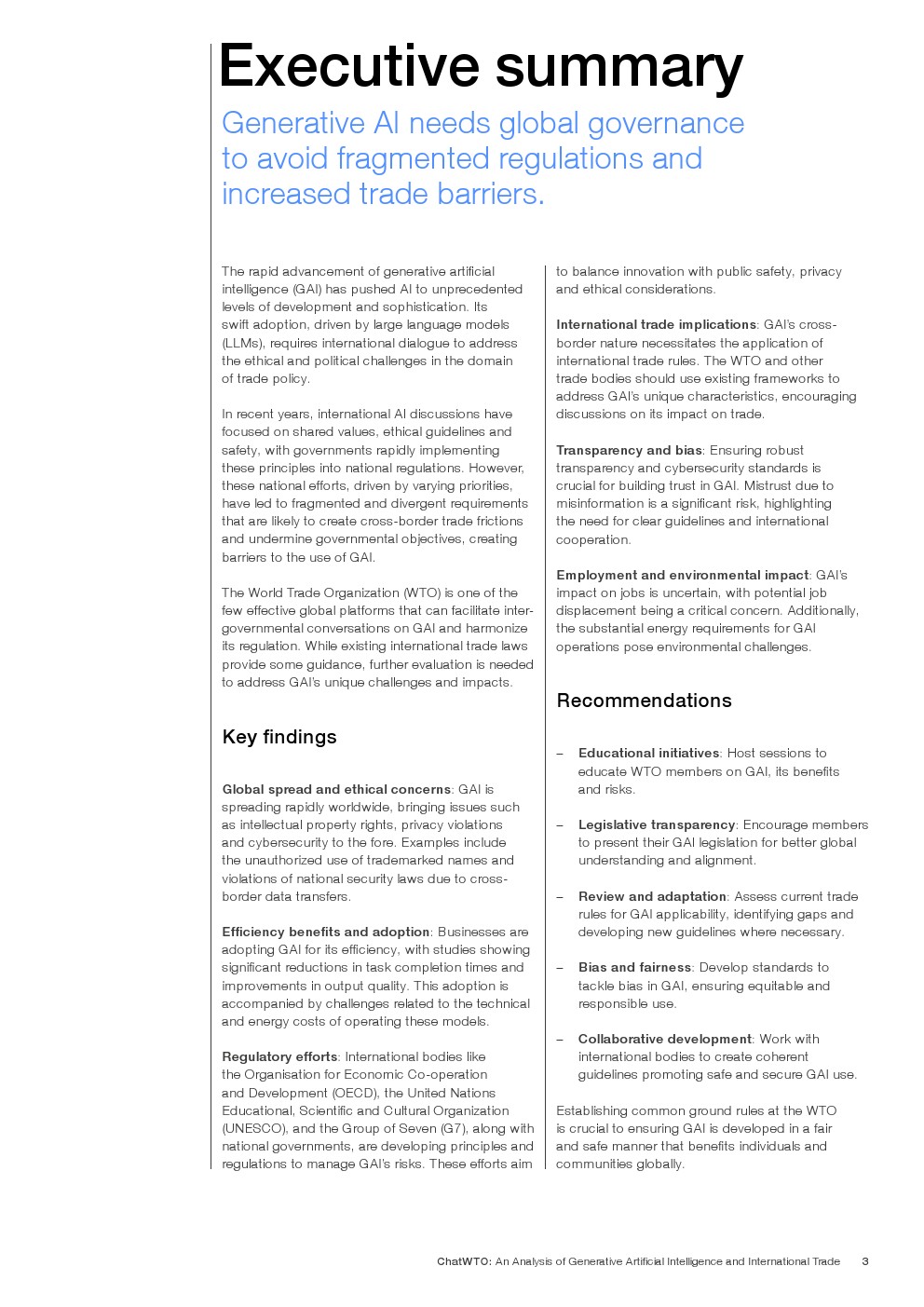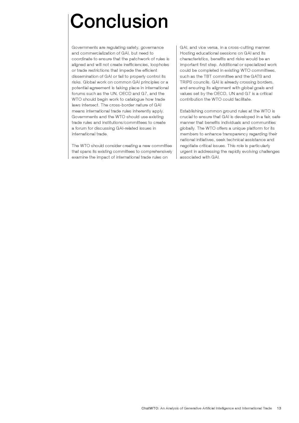 世界贸易组织(WTO)是为数不多的能够促进GAI政府间对话并协调其监管的有效全球平台之一。