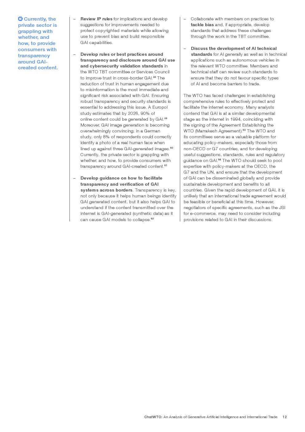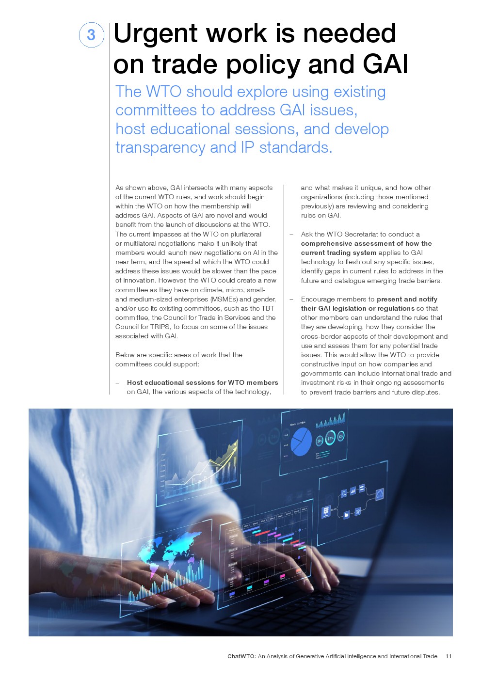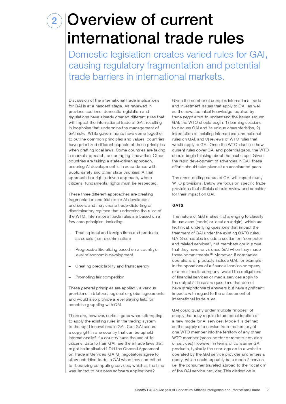 国际贸易影响:GAI的跨境性质要求应用国际贸易规则。世贸组织和其他贸易机构应利用现有框架来解决GAI的独特特点,鼓励就其对贸易的影响进行讨论。