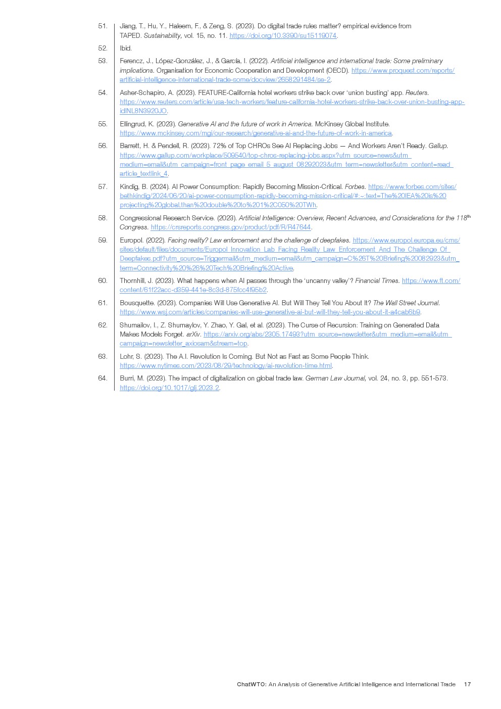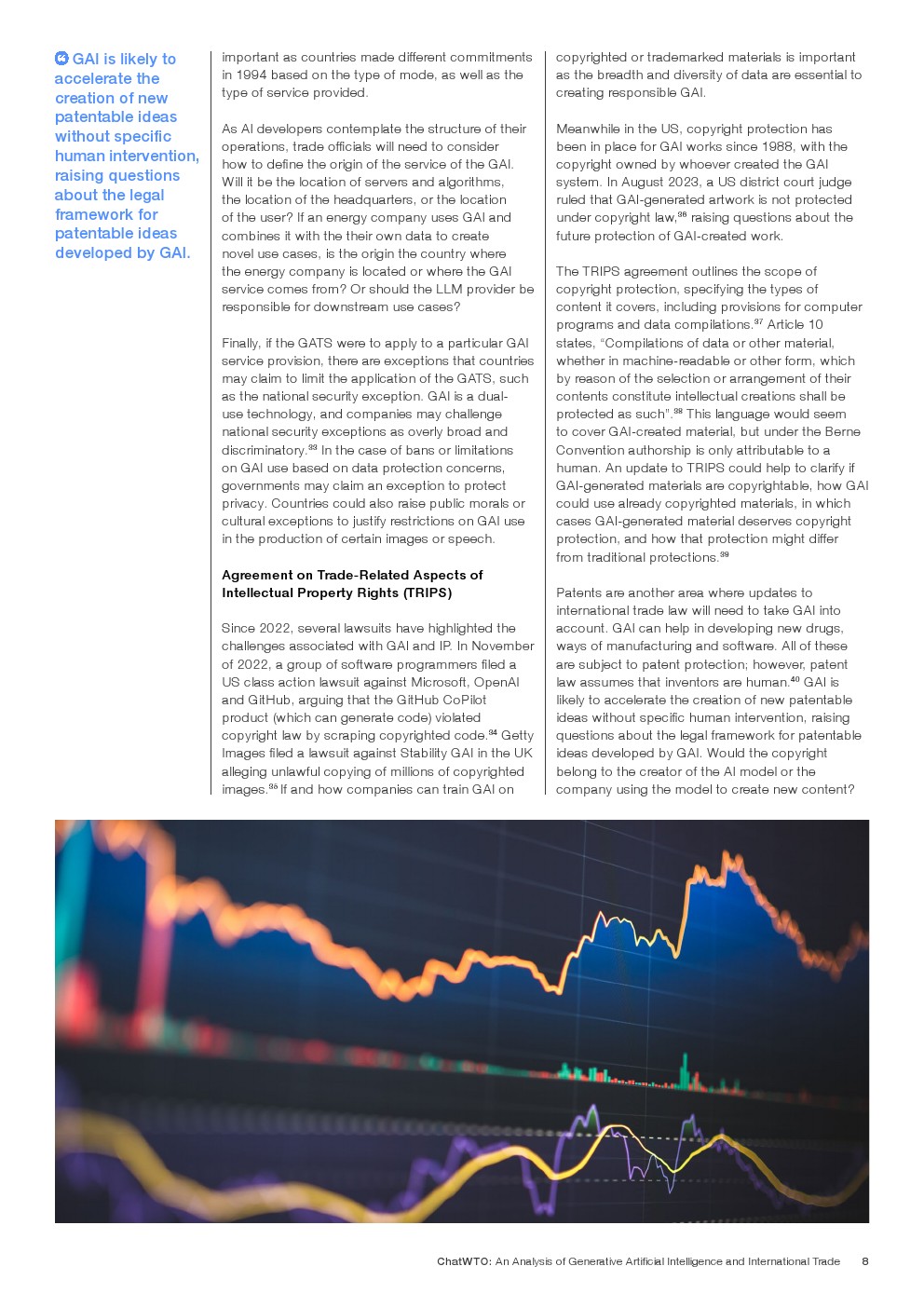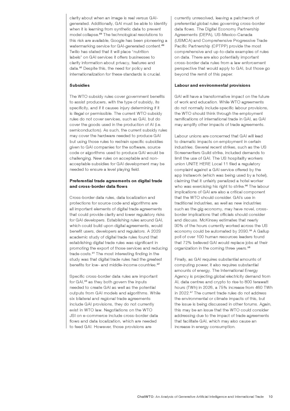 国际贸易影响:GAI的跨境性质要求应用国际贸易规则。世贸组织和其他贸易机构应利用现有框架来解决GAI的独特特点,鼓励就其对贸易的影响进行讨论。
