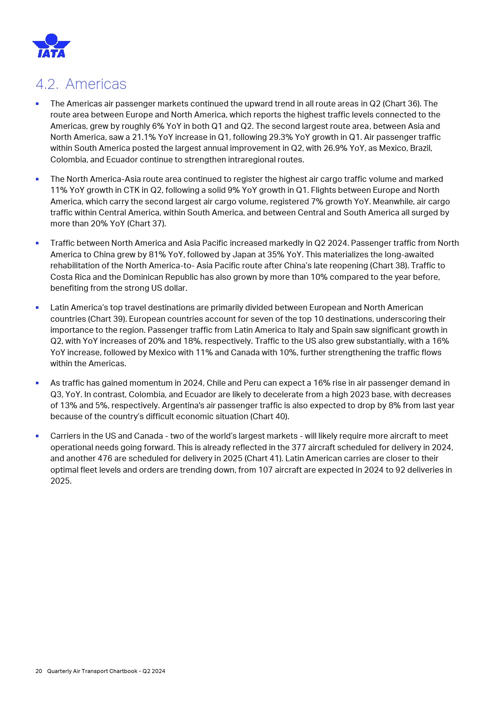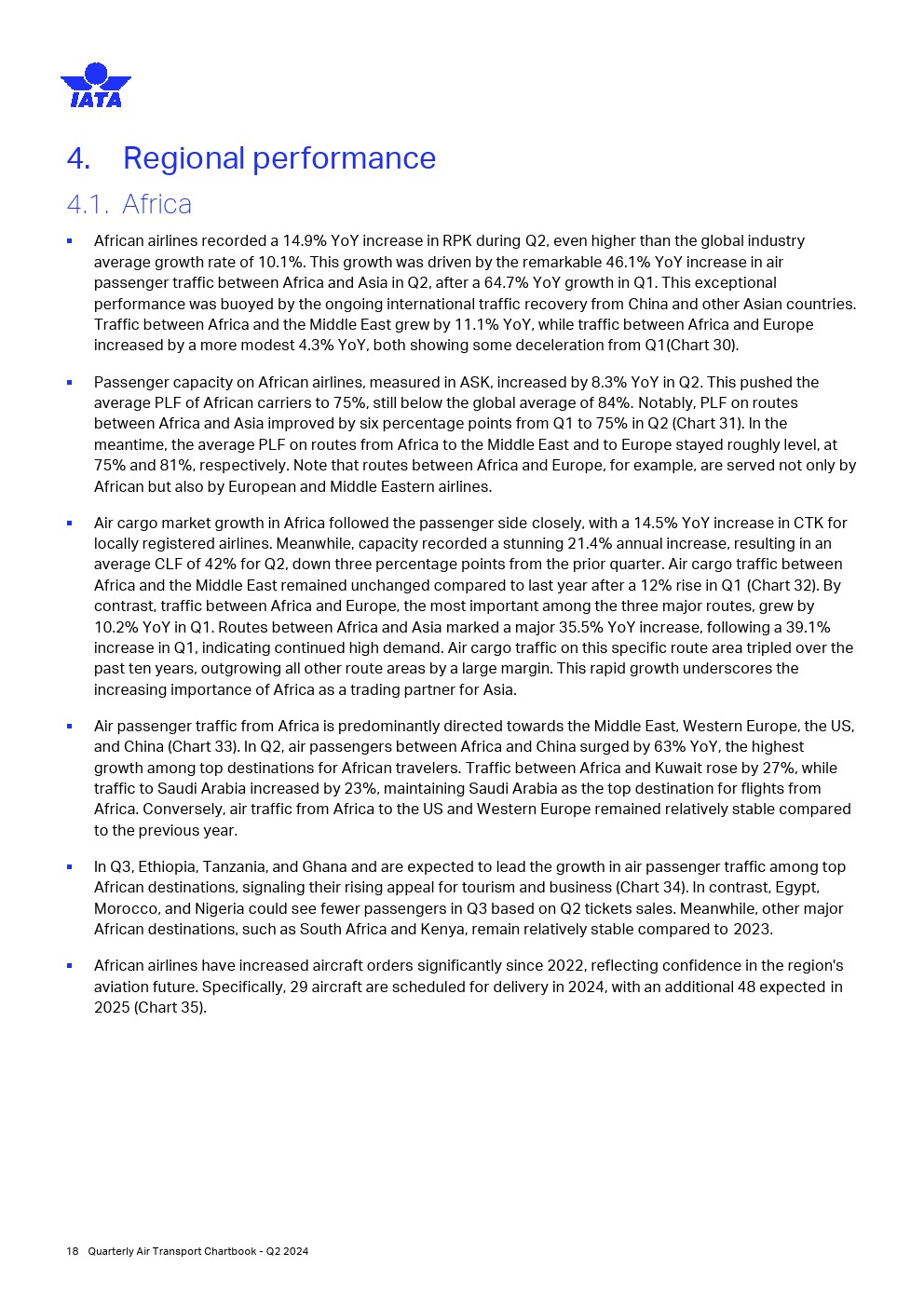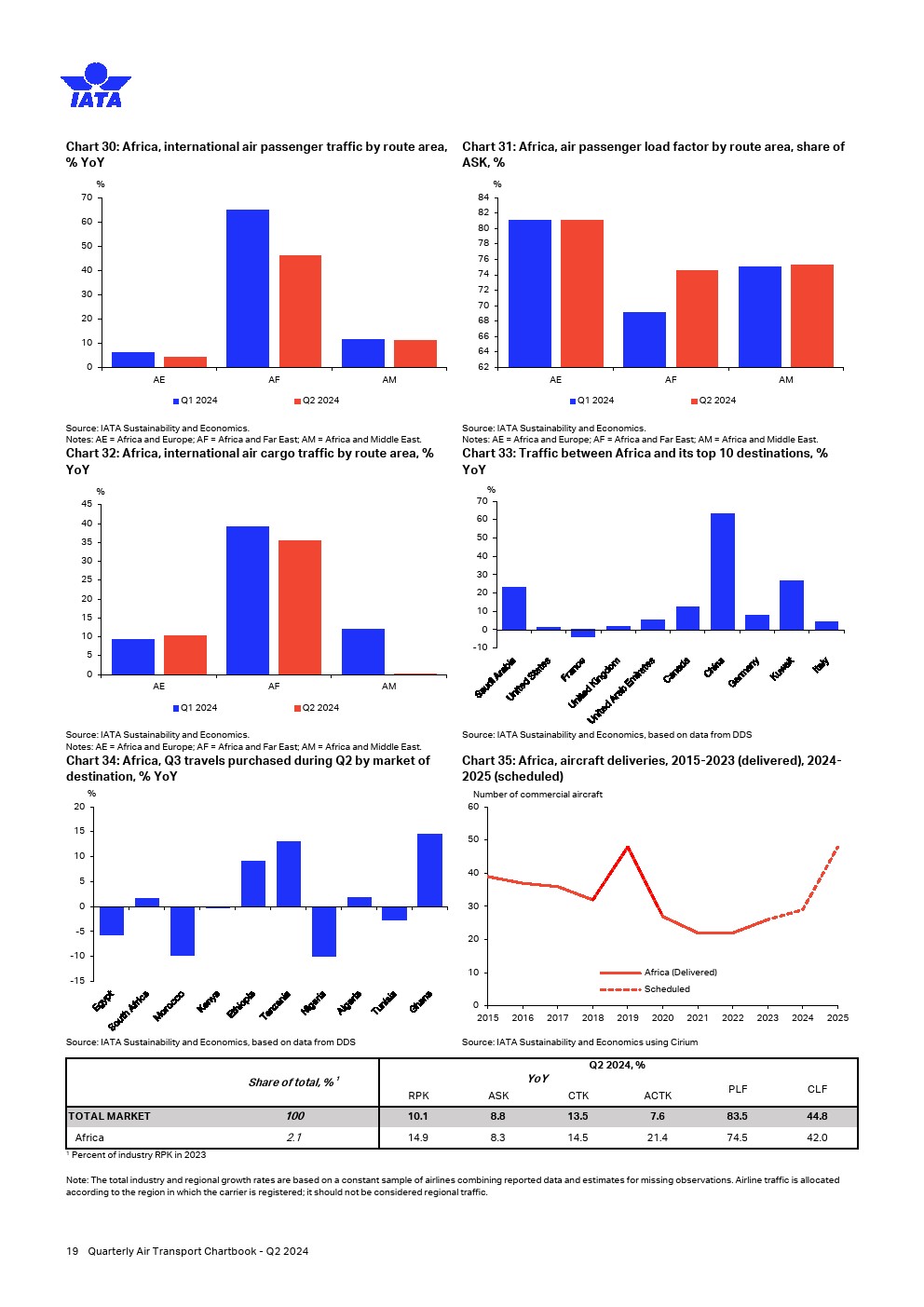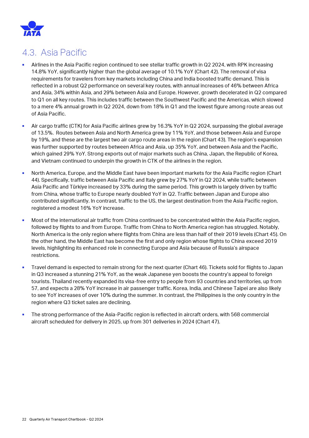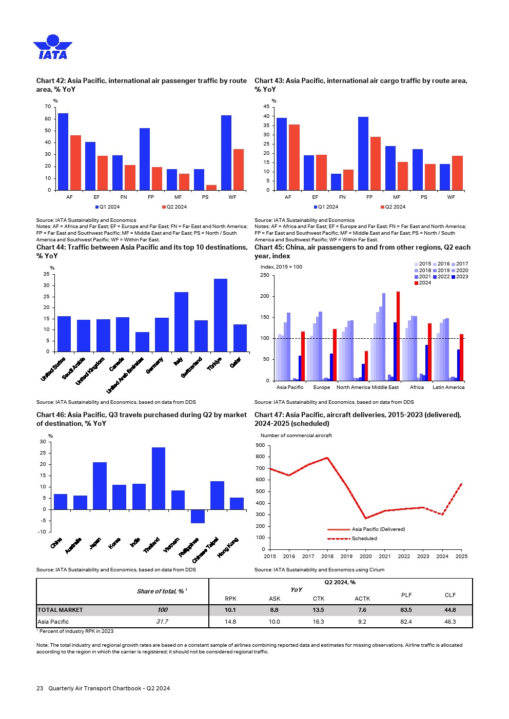 2024年第二季度的航空货运吨公里(CTK)年增长率为13.5%。经季节性调整后,航空货运量较第一季度增长2.7%。在贸易紧张局势不断升级、政策不确定性加剧的背景下,出现了如此高的交通流量,部分原因是亚洲电子商务的蓬勃发展,以及全球海运的不断中断,这导致了某些供应链的战略多元化。