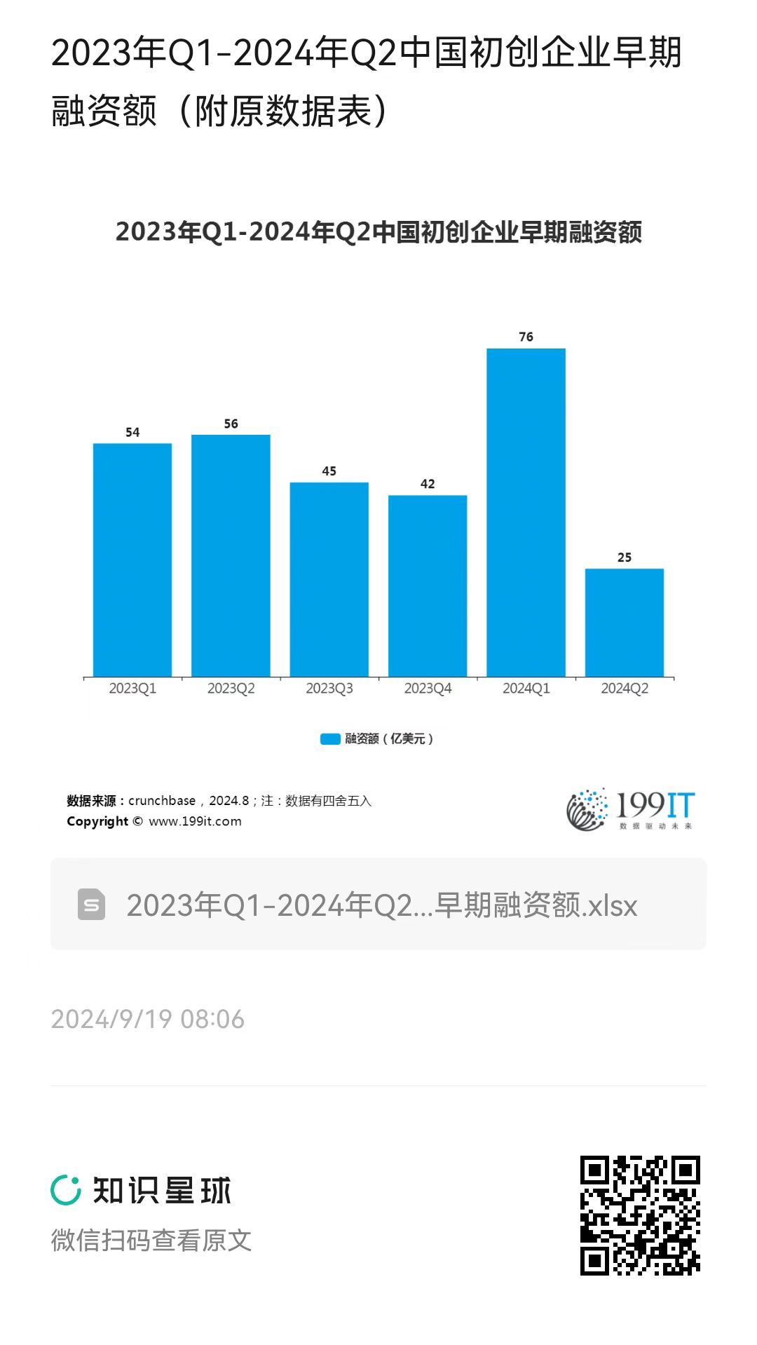 2023年Q1-2024年Q2中国初创企业早期融资额(附原数据表) ​​​