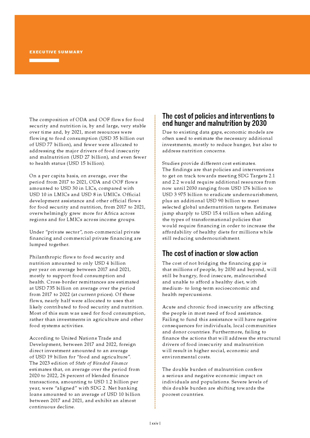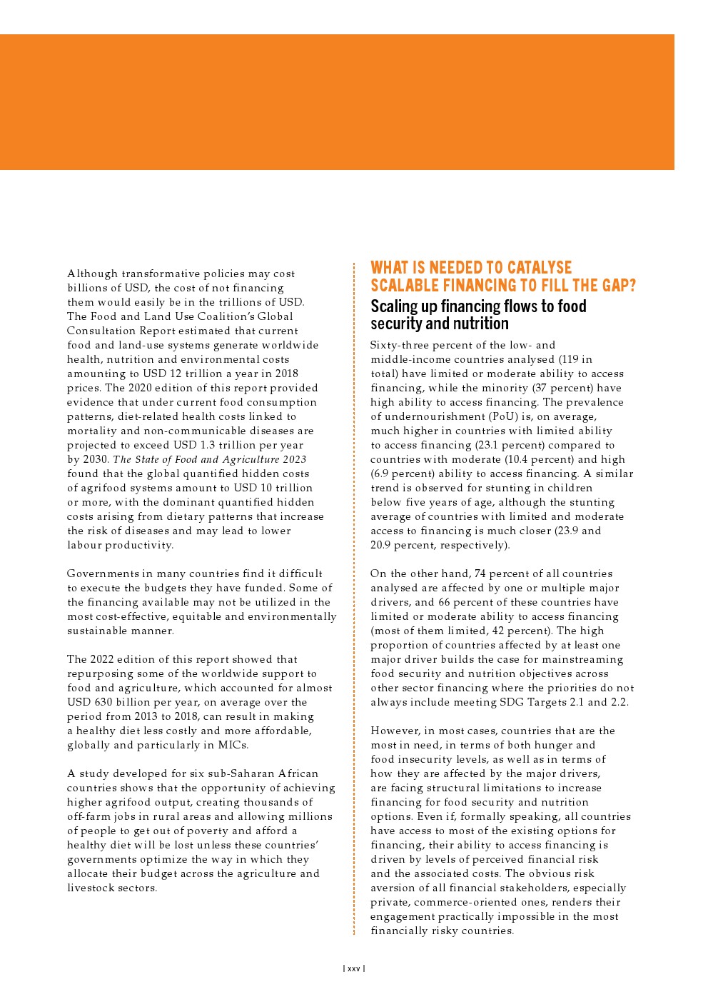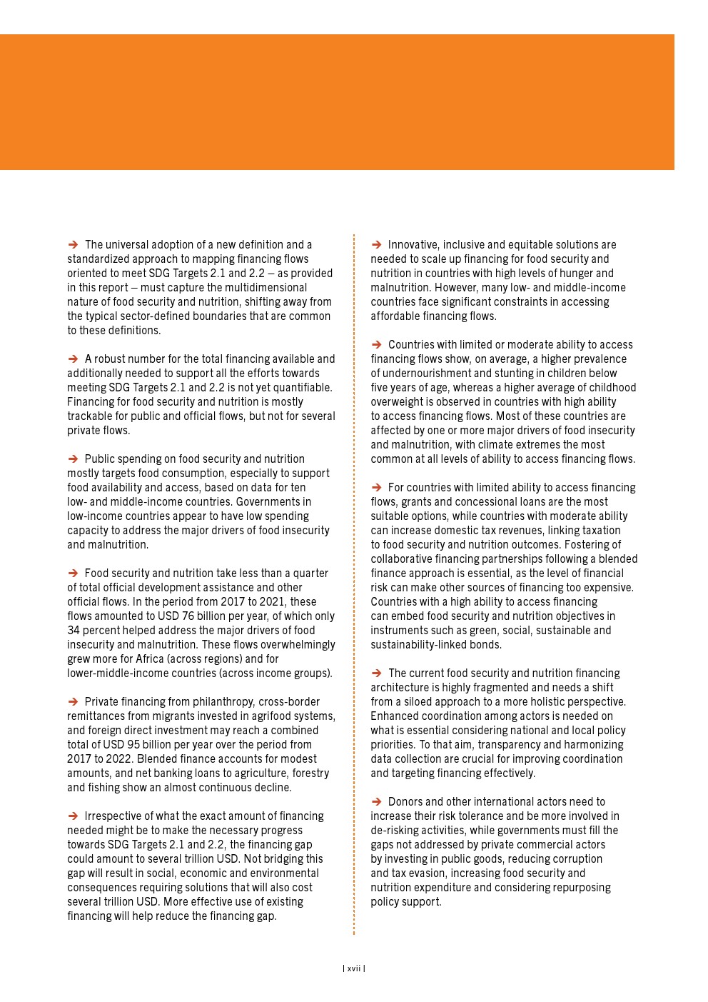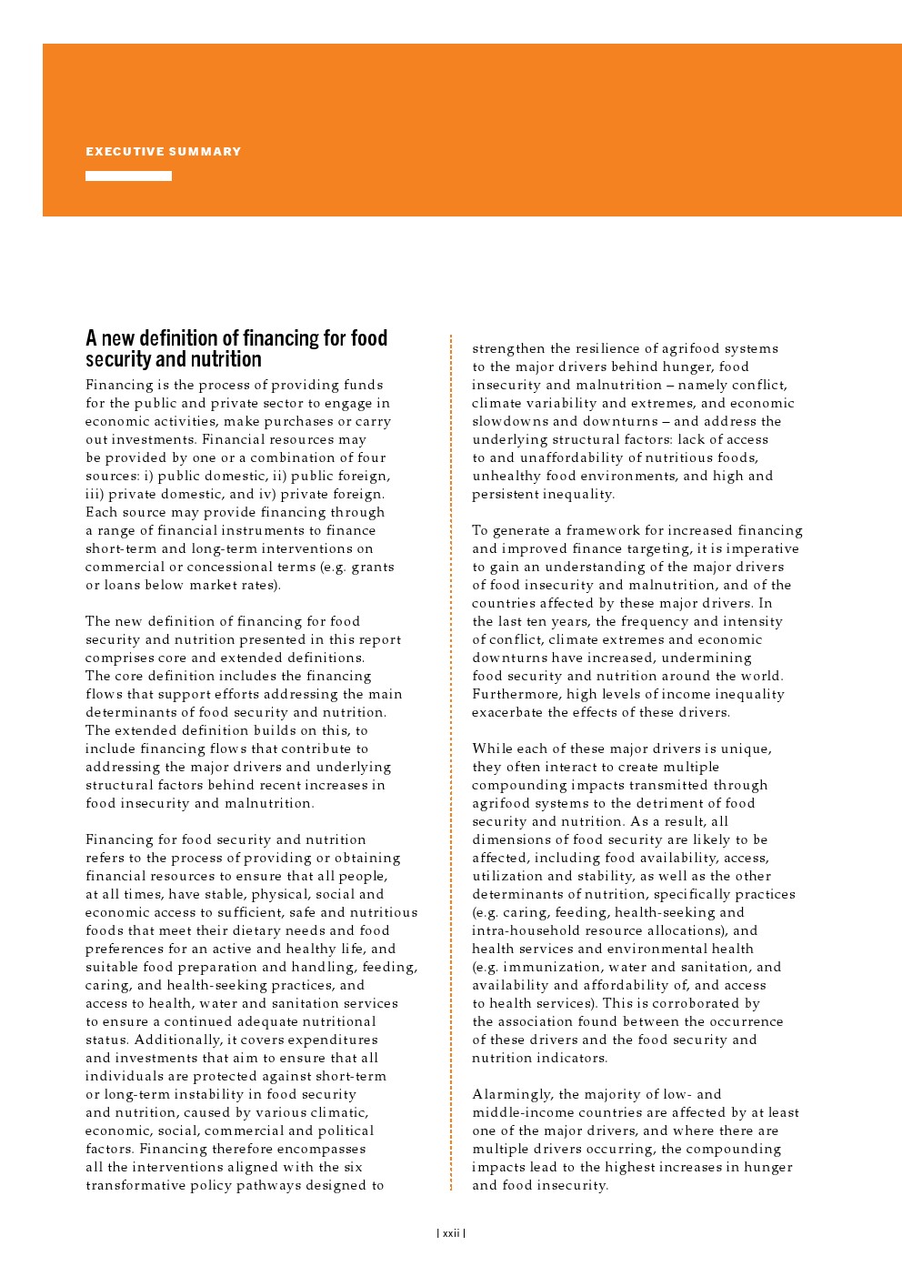 目前,对粮食安全和营养的供资采用了几种定义,导致对目前供资水平的估计存在明显差异。这一空白导致在粮食安全和营养方面花费了多少资金、在何处以及以何种效率花费资金的估计存在巨大差异,从而对评估实现可持续发展目标2.1和2.2的路径所需的趋势和结果的后续分析产生了负面影响。