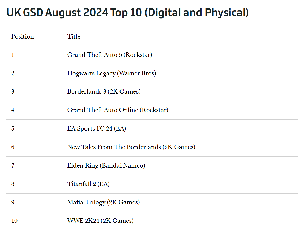 Take-Two在这个月表现非常强劲,Rockstar的《GTA 5》和《GTA Online》分别排名第一和第四,同时,其旗下2K Games品牌也表现不俗,《无主之地》、《黑手党》和《WWE》均进入前十。