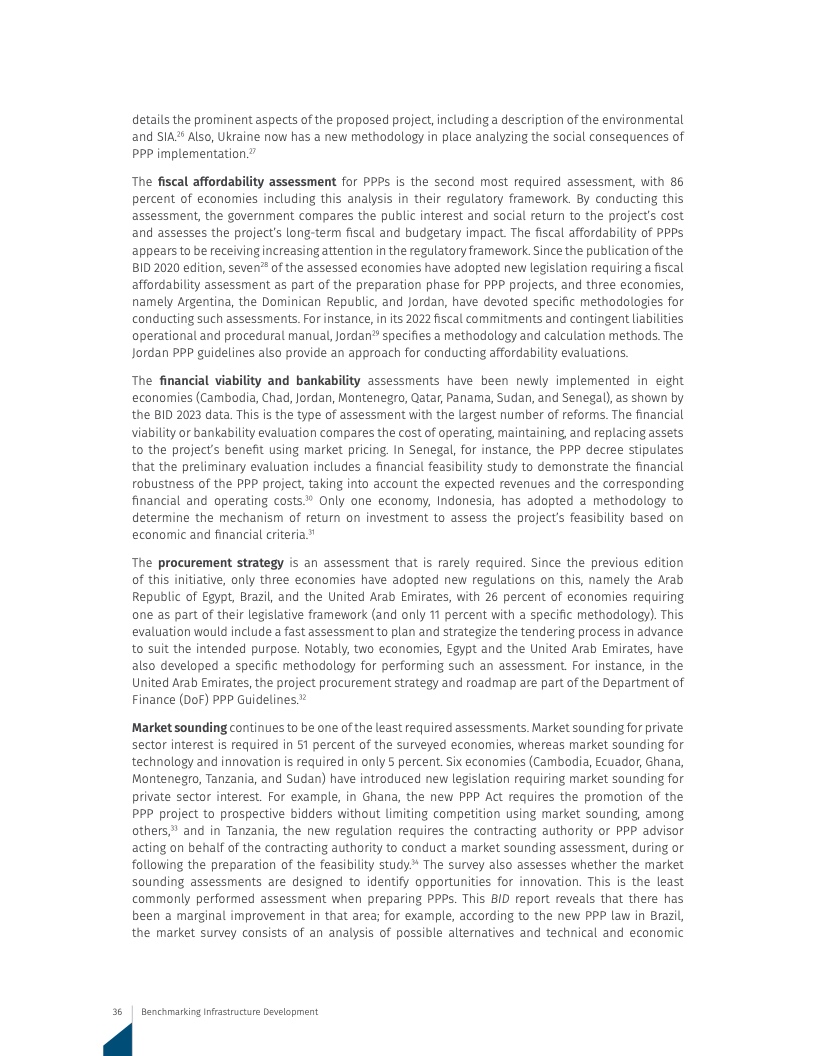 PPP改革在质量和性质上仍有差异,尤其是在PPP项目准备阶段。准备工作,如可行性研究、环境评估和合同透明度,在投资生命周期中至关重要,然而改进进展有限。例如,经济体对技术和创新的市场调查需求仅占5%,2019年增长仅为1%。在本报告所调研的140个经济体中,只有三分之一达到了PPP交易文件标准化要求或在线公布评估文件,2019年后在这些领域没有任何进展。
