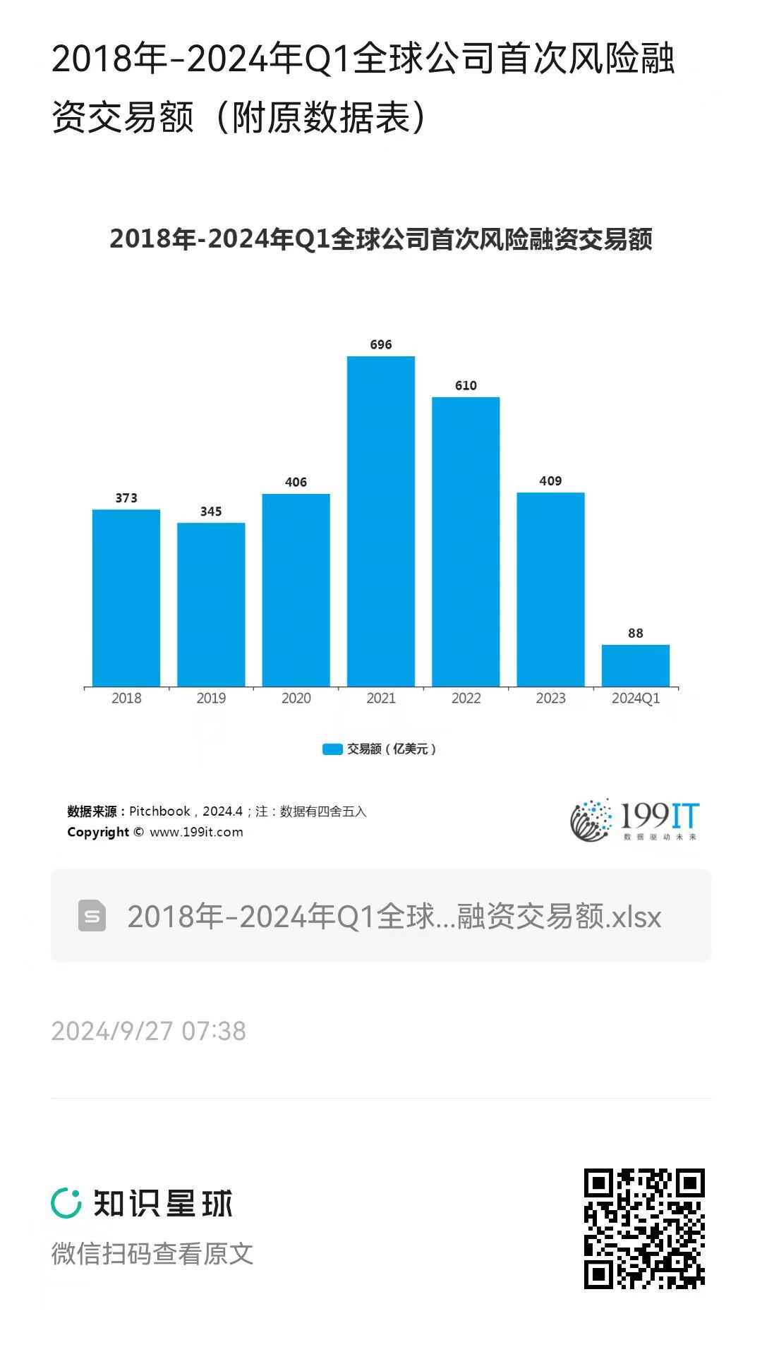 - 2017年-2023年Q1全球公司首次风险融资交易额(附原数据表)