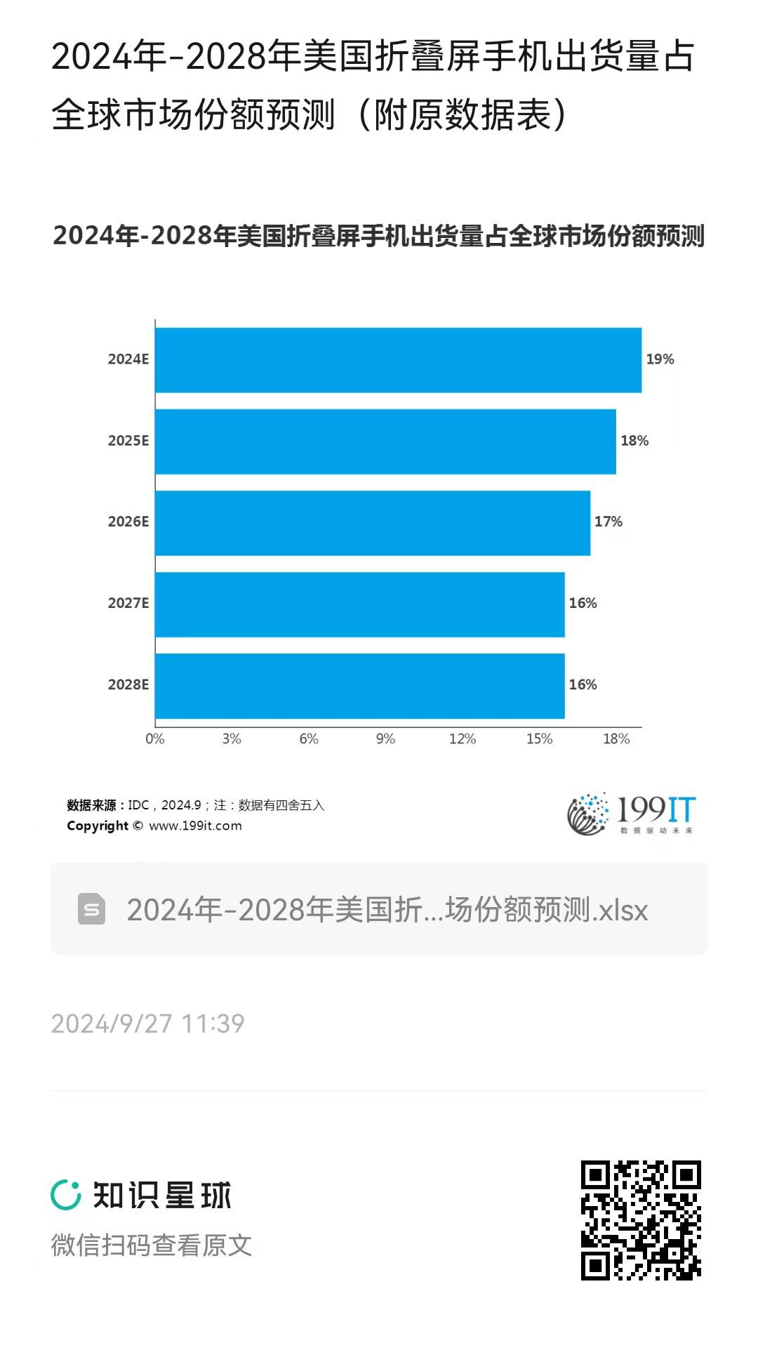 - 2024年-2028年中国折叠屏手机出货量占全球市场份额预测(附原数据表)