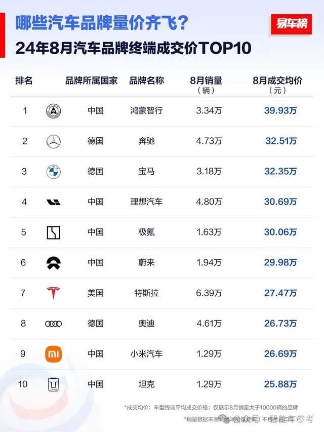 鸿蒙智行全系交付39931辆车,成交均价39.9万元,自称车市成交“均价Top1”,根据易车网统计,这项数据同样超过了BBA。