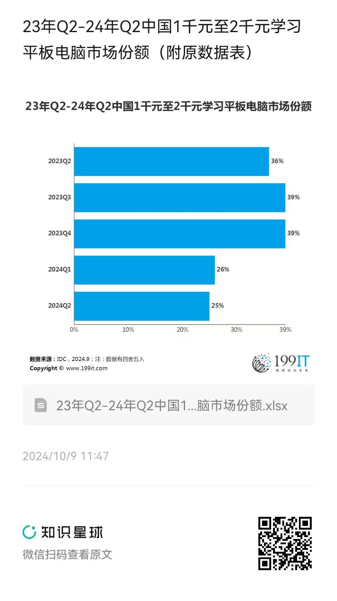 23年Q2-24年Q2中国1千元至2千元学习平板电脑市场份额(附原数据表) ​​​