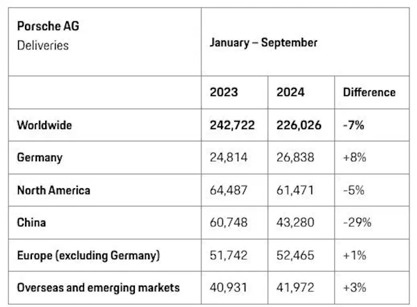 至于中国市场,前三季度共交付43280辆,同比大跌29%,为保时捷跌幅最大的单一市场。