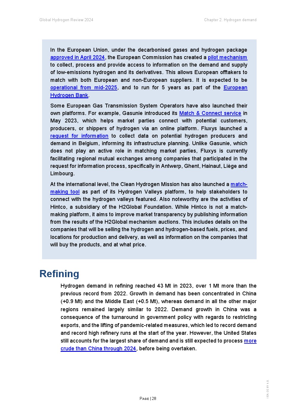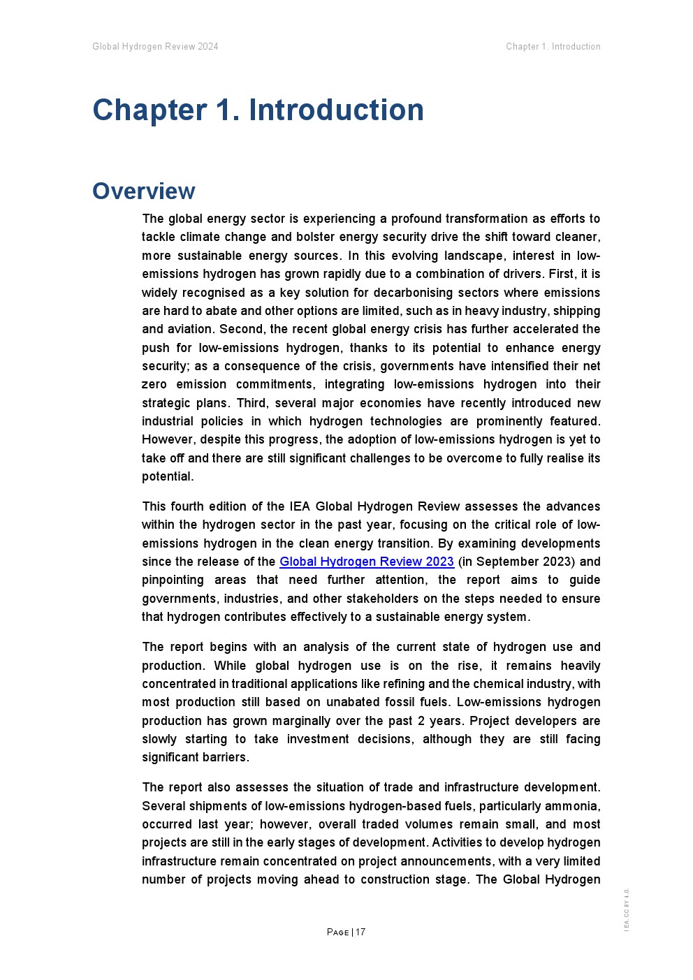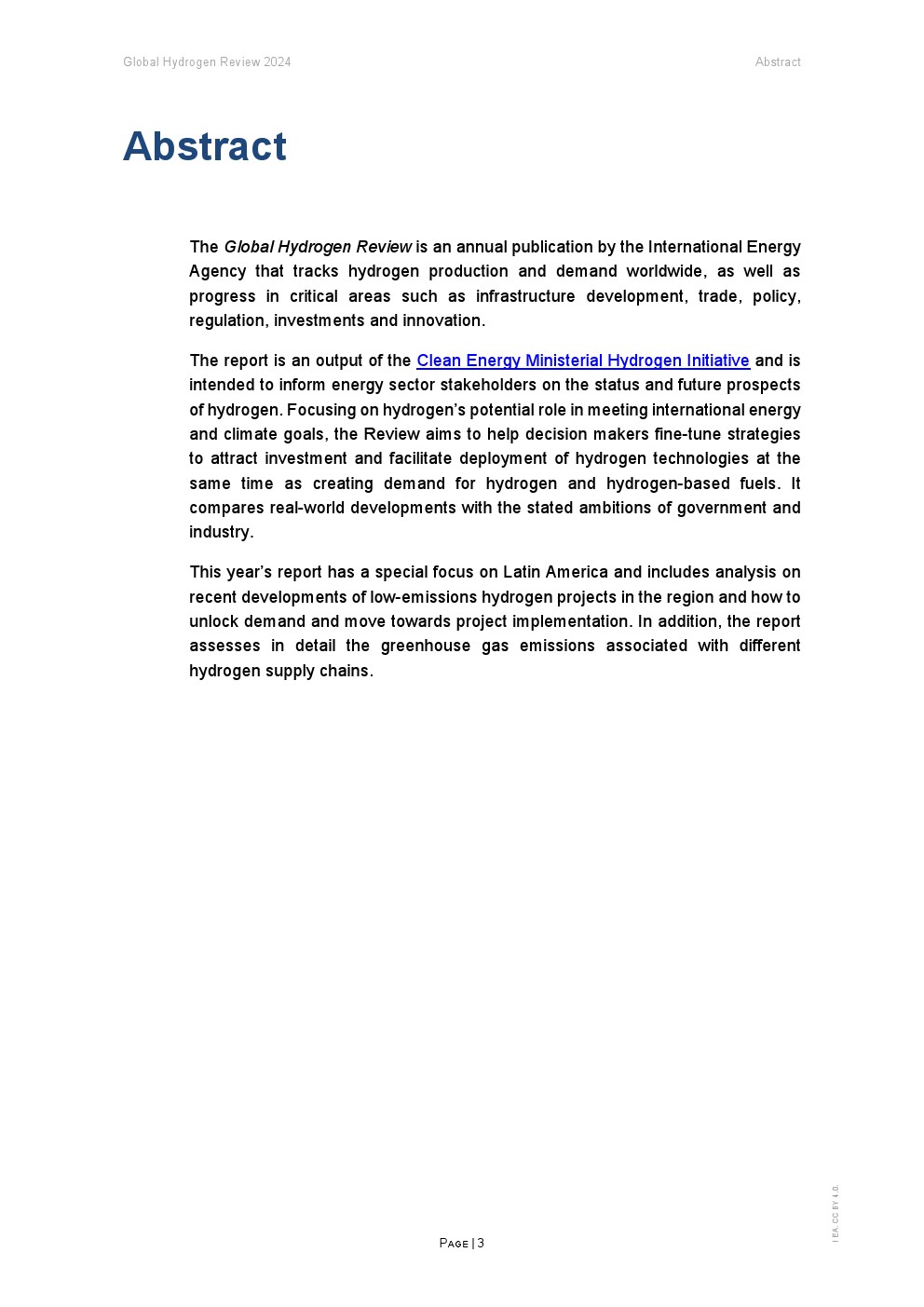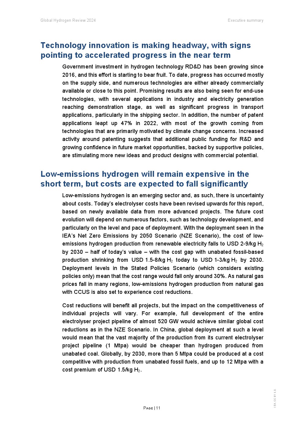 IEA发布了“2024年全球氢评价”,跟踪了全球氢气生产和需求,以及基础设施发展、贸易、政策、法规、投资和创新等关键领域的进展。