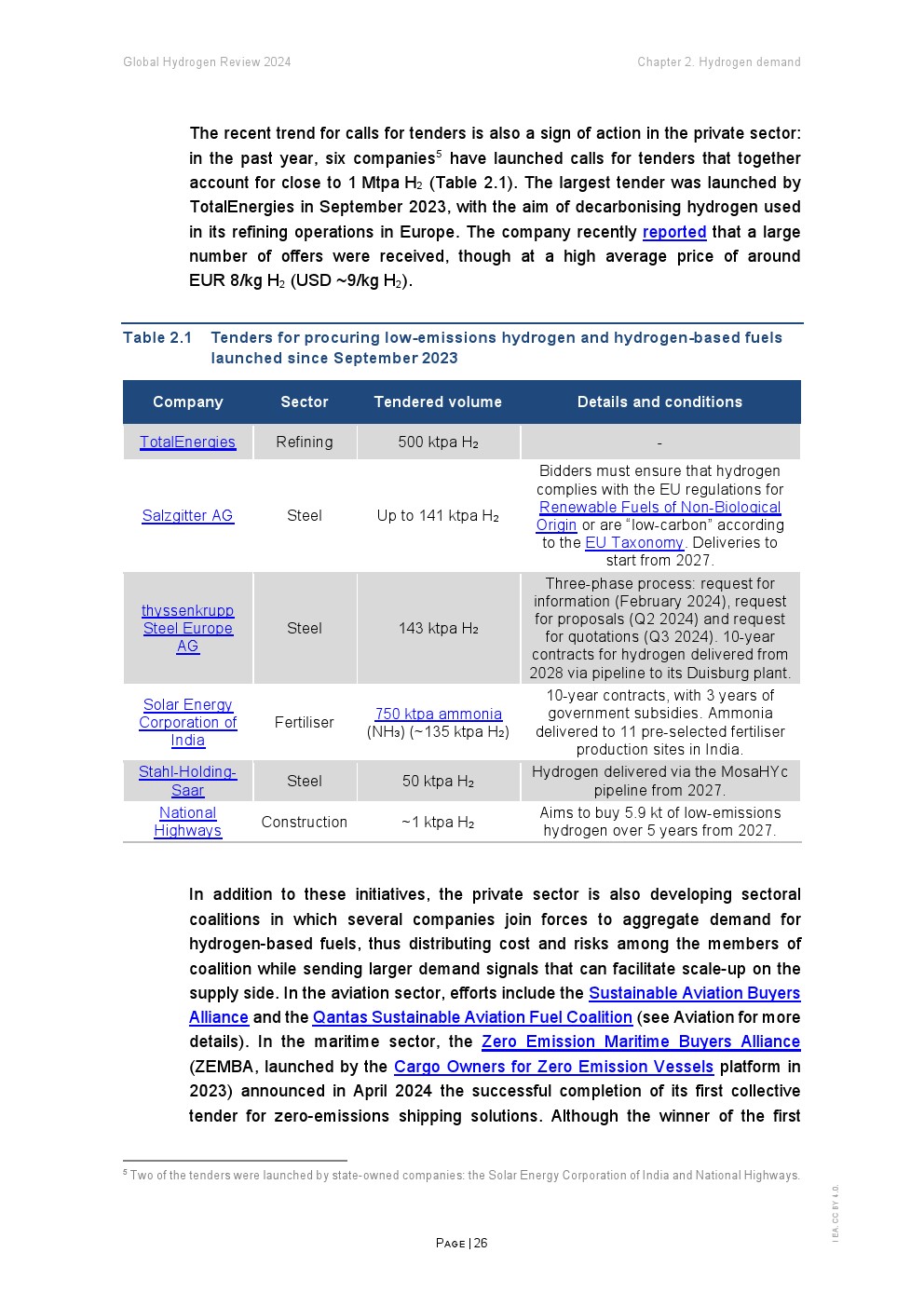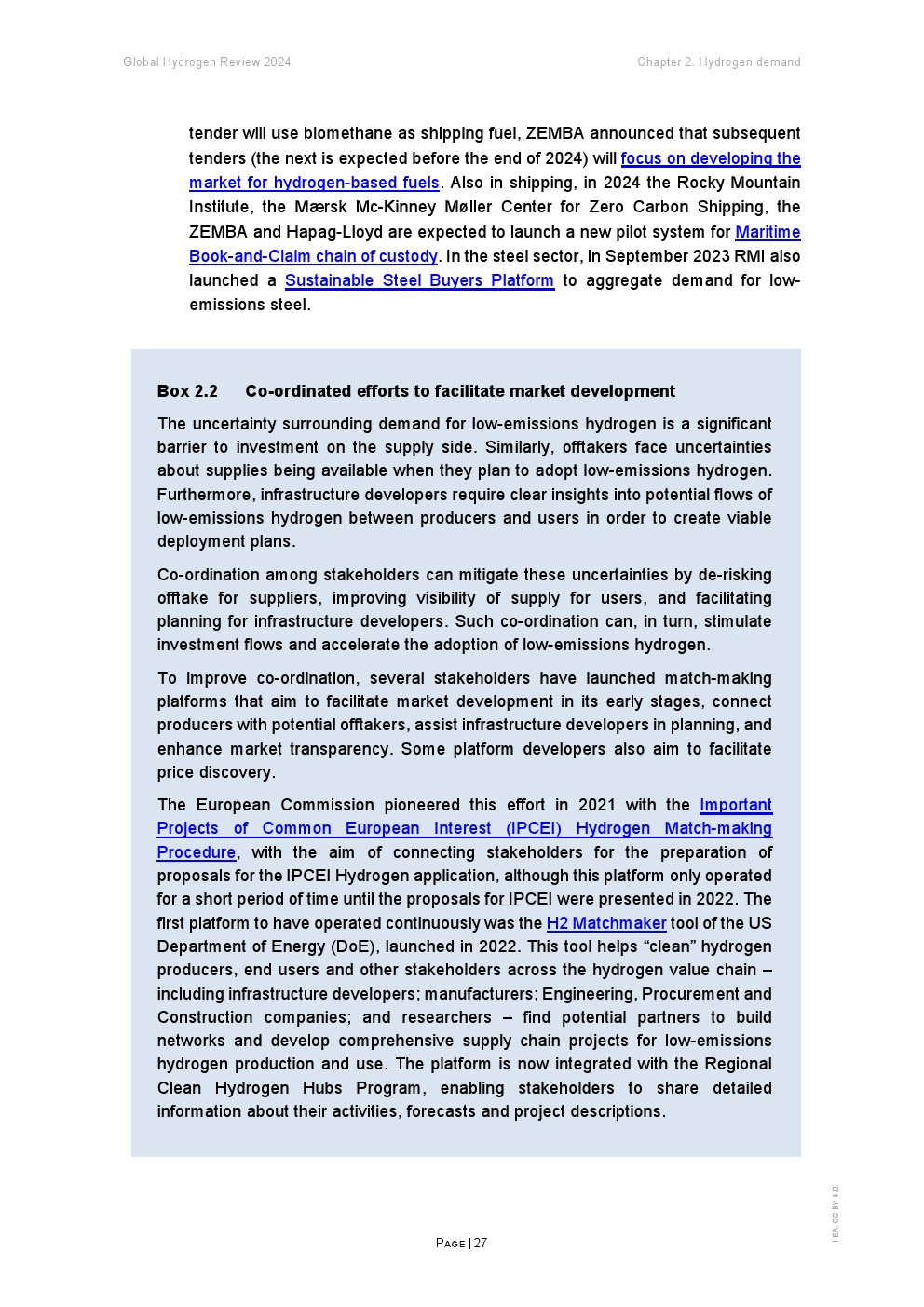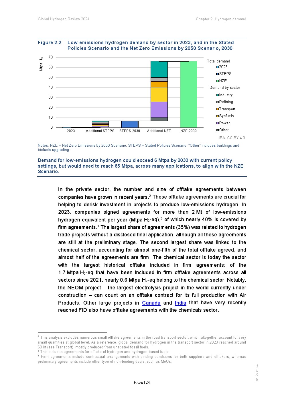 随着各国政府开始实施关键政策,刺激对低排放氢需求的努力正在获得动力。这些措施也引发了行业方面的行动,签署了越来越多的承购协议,并启动了购买低排放氢气的项目。这些努力的总体规模仍然不足以使氢为实现气候目标做出贡献。
