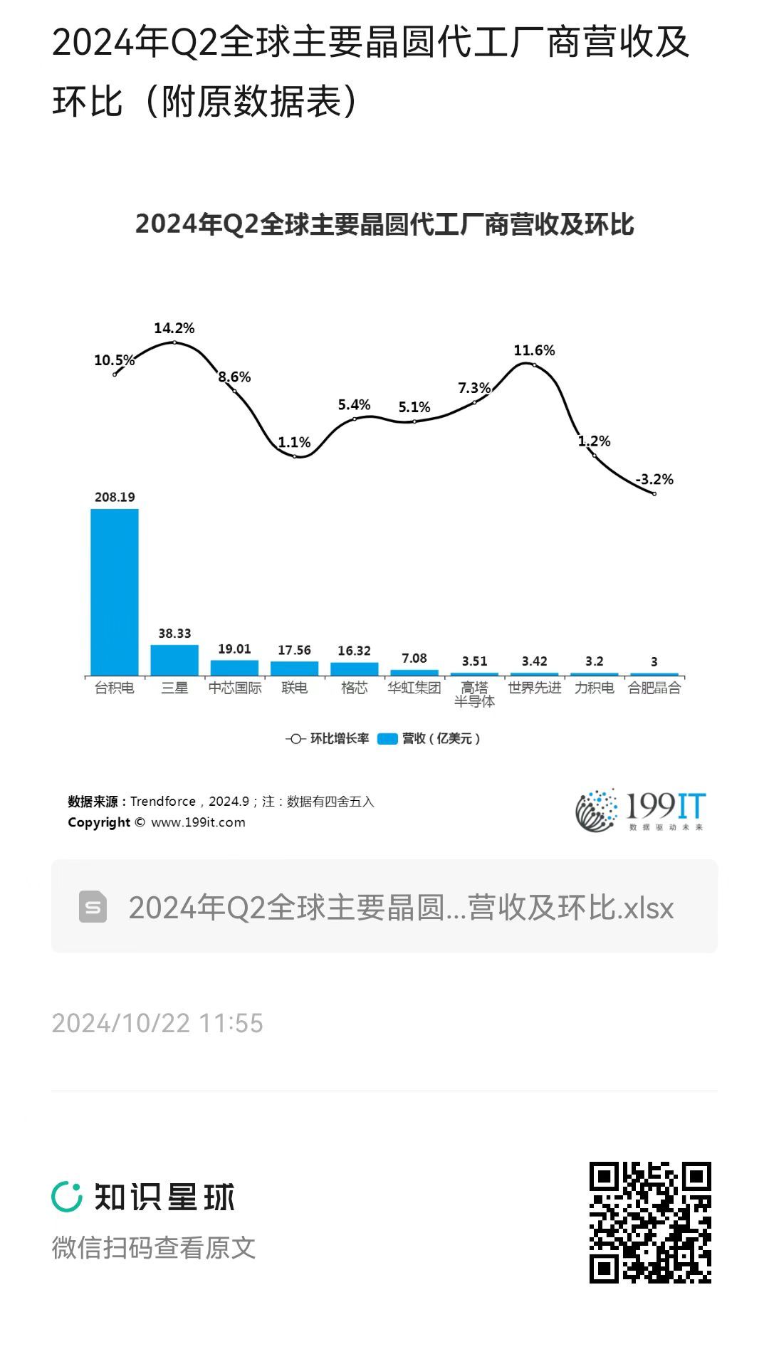 - 2024年Q2全球主要晶圆代工厂商营收市场份额(附原数据表)