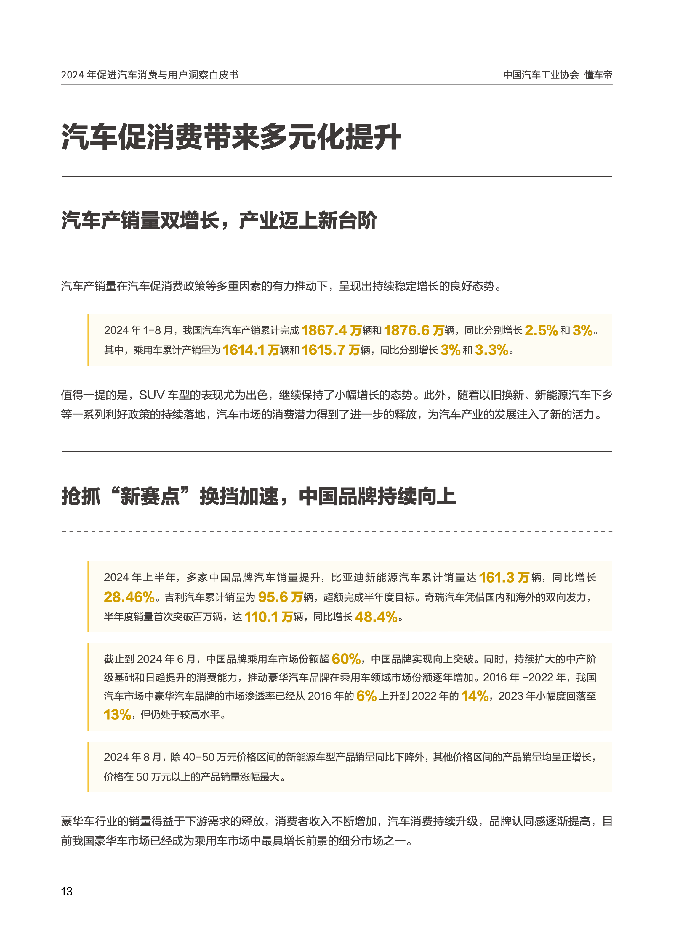 我国购车人群的结构出现了显著变化,增换购人群正逐步取代首购人群,成为中国乘用车新车销售市场的主要消费 力量。据罗兰贝格数据显示,目前中国新车增换购比例超 50%,且比例持续上升。其中,高端新能源车主中 80% 为增换购用户,远高于燃油车车主的增换购比例,这表明新能源车逐步成为增换购需求人群的重要选择。新能源汽 车市场的快速发展,带动我国在新能源汽车领域取得了显著的技术进步,也成为全球新能源车市场的重要角色。