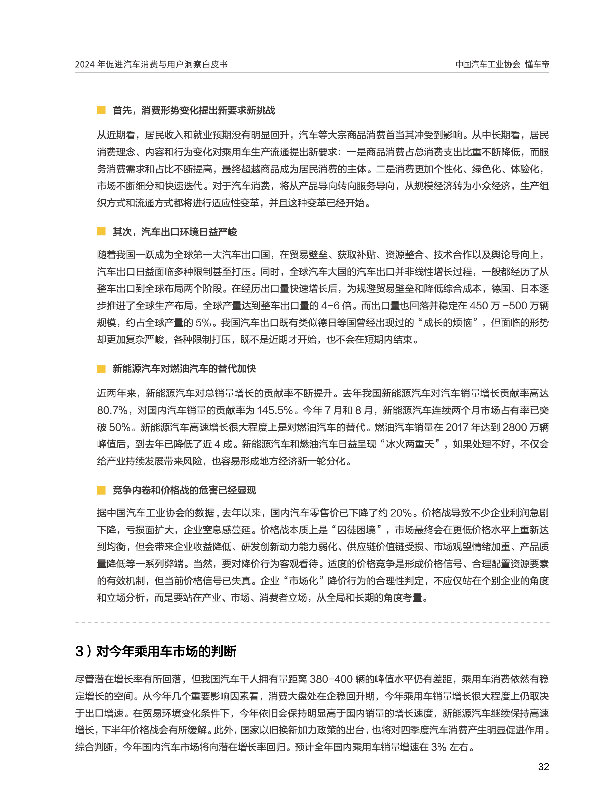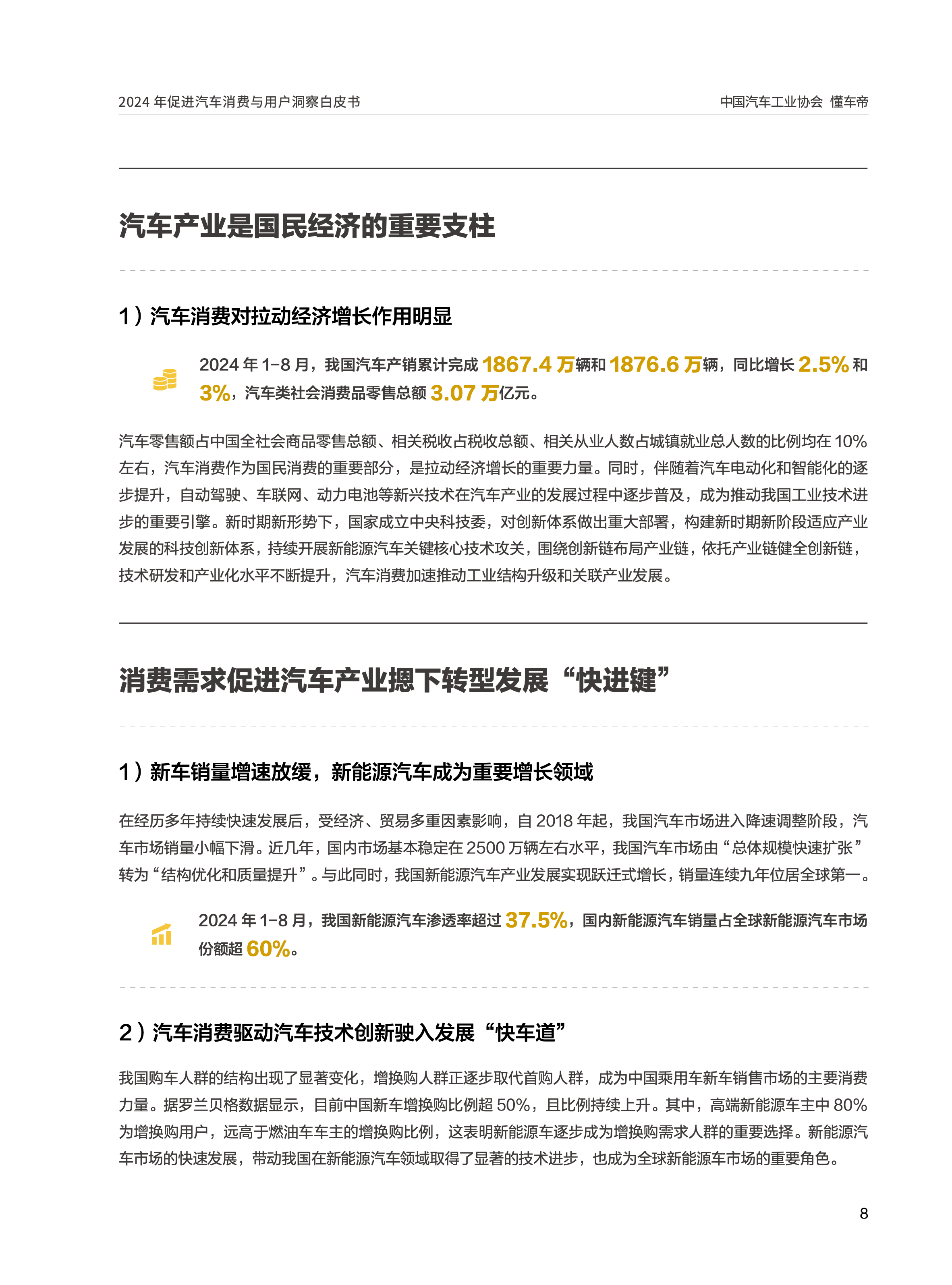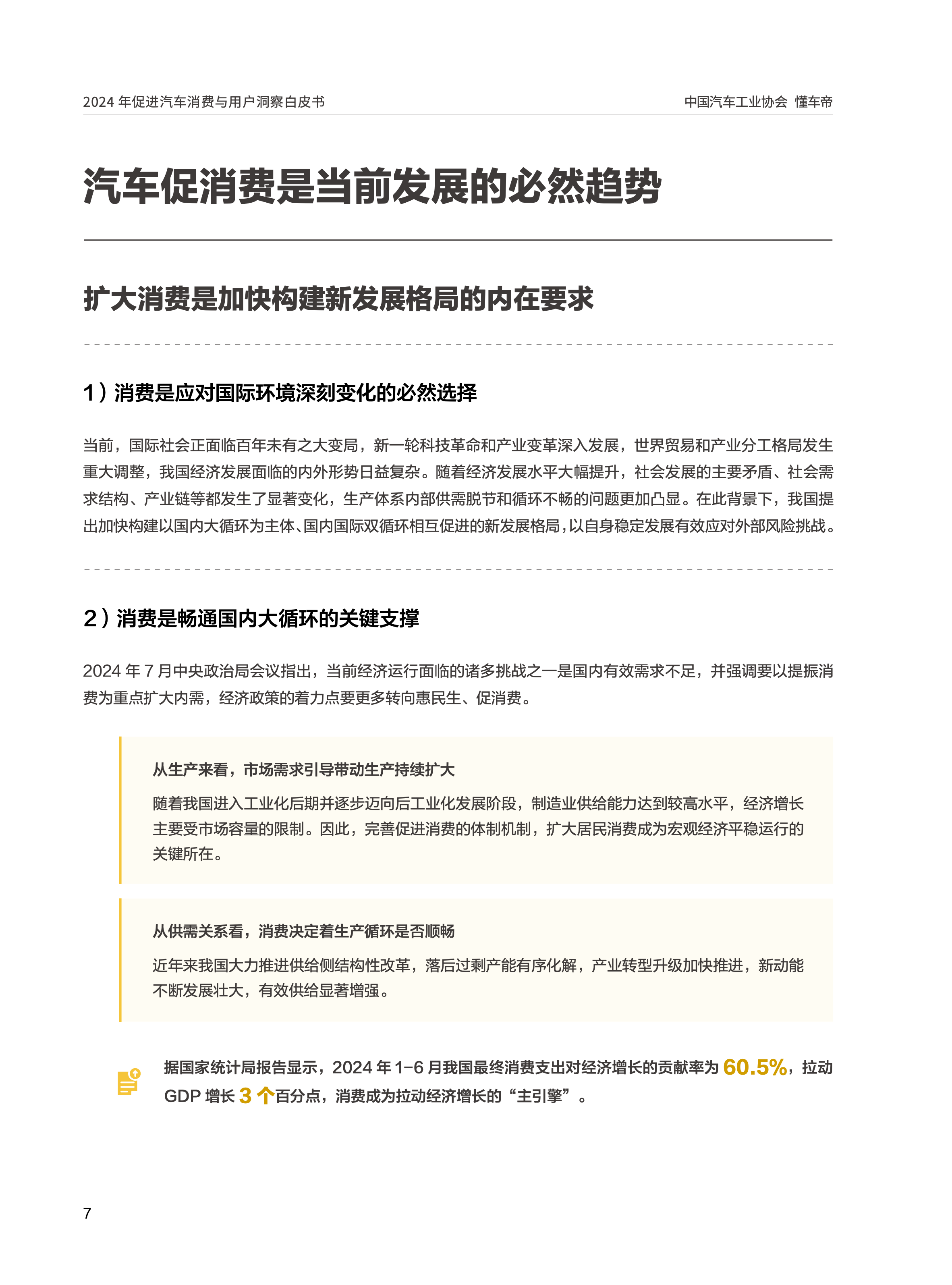 汽车零售额占中国全社会商品零售总额、相关税收占税收总额、相关从业人数占城镇就业总人数的比例均在 10% 左右,汽车消费作为国民消费的重要部分,是拉动经济增长的重要力量。同时,伴随着汽车电动化和智能化的逐 步提升,自动驾驶、车联网、动力电池等新兴技术在汽车产业的发展过程中逐步普及,成为推动我国工业技术进 步的重要引擎。新时期新形势下,国家成立中央科技委,对创新体系做出重大部署,构建新时期新阶段适应产业 发展的科技创新体系,持续开展新能源汽车关键核心技术攻关,围绕创新链布局产业链,依托产业链健全创新链, 技术研发和产业化水平不断提升,汽车消费加速推动工业结构升级和关联产业发展。