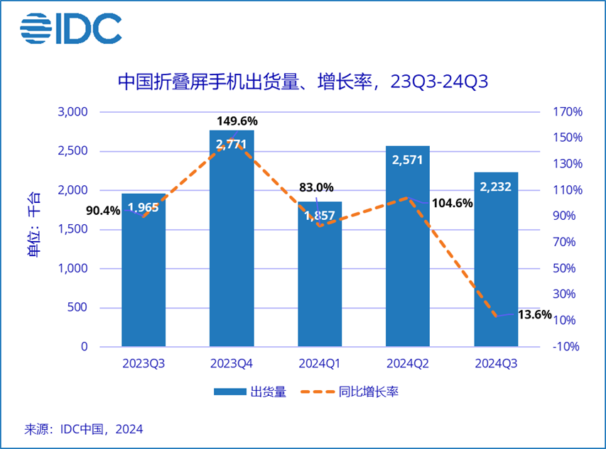 IDC表示,折叠屏手机自2019年问世以来,虽然经过了5年的快速发展,市场渗透率依然只有3.2%(2024年前三季度)。